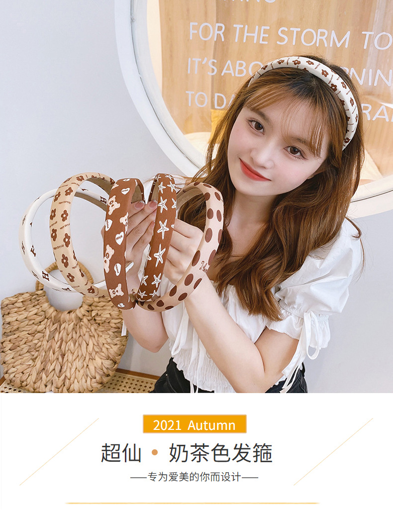 밀크 티 컬러 스폰지 넓은 챙 헤어 후프 여성용 한국 스타일 간단한 워시 헤어 스탬프 여성 우아한 빈티지 헤어 액세서리 머리띠