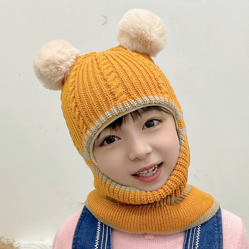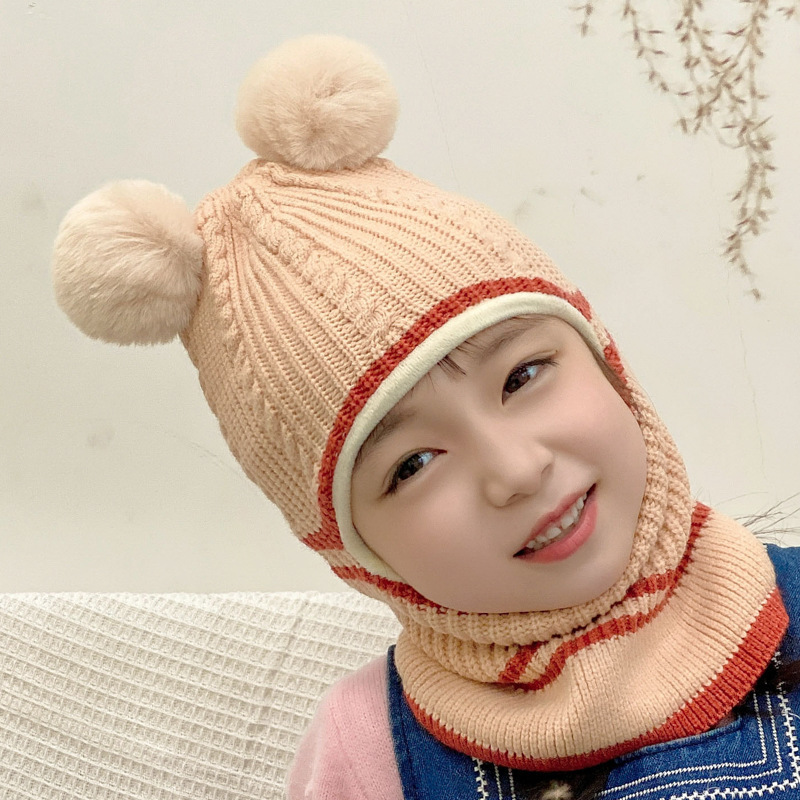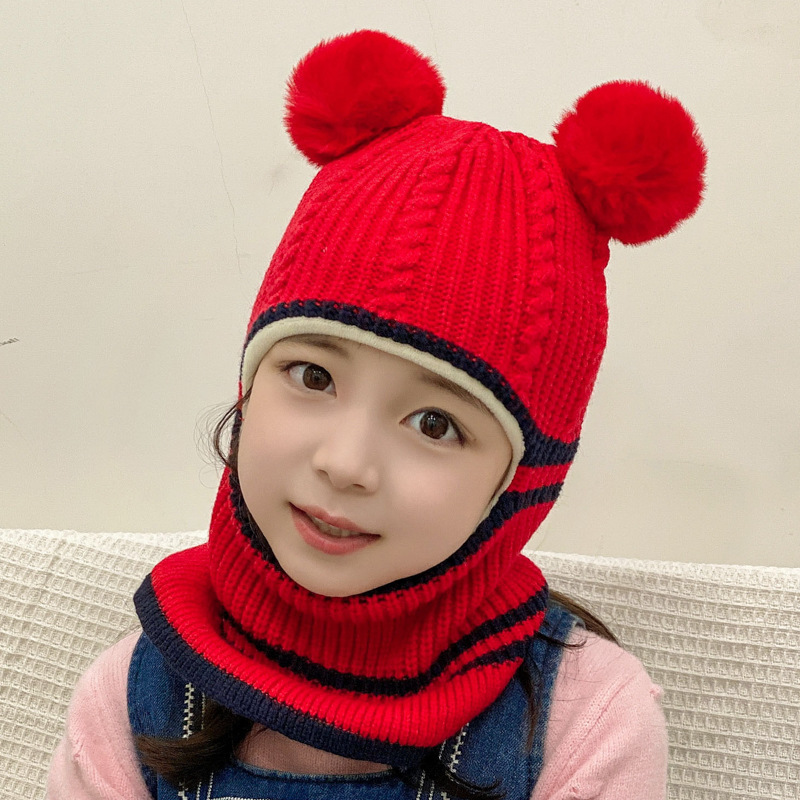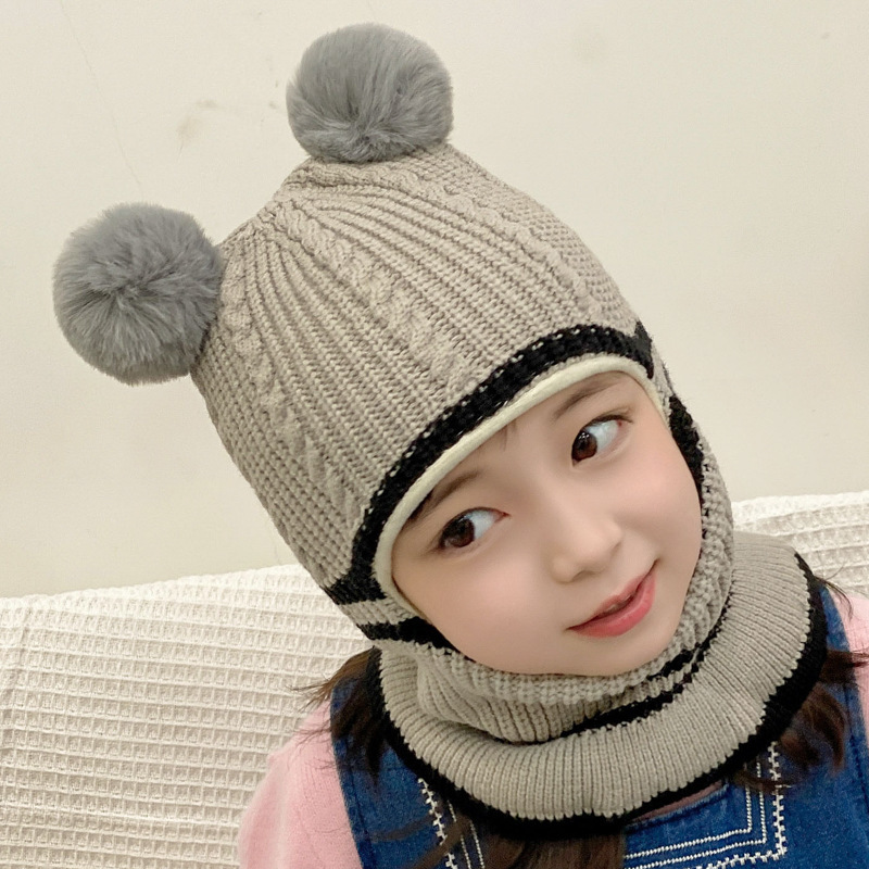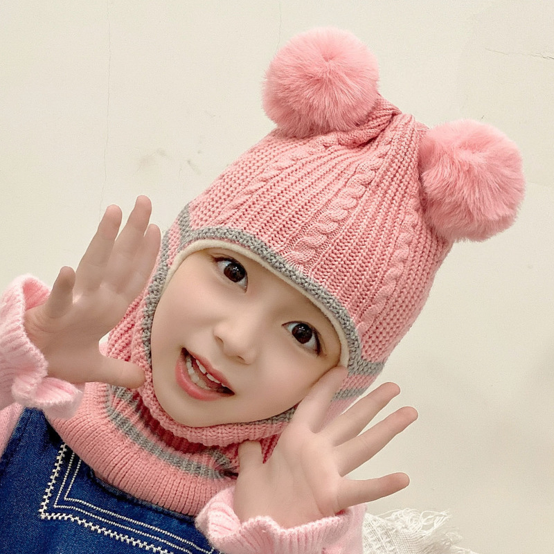 어린이 모자 겨울 3-8 세 방풍 얼굴 보호 통합 모자 니트 울 따뜻한 목 어린이 남아 여아 모자