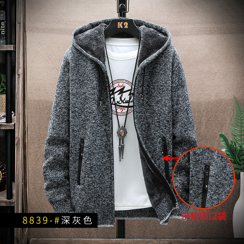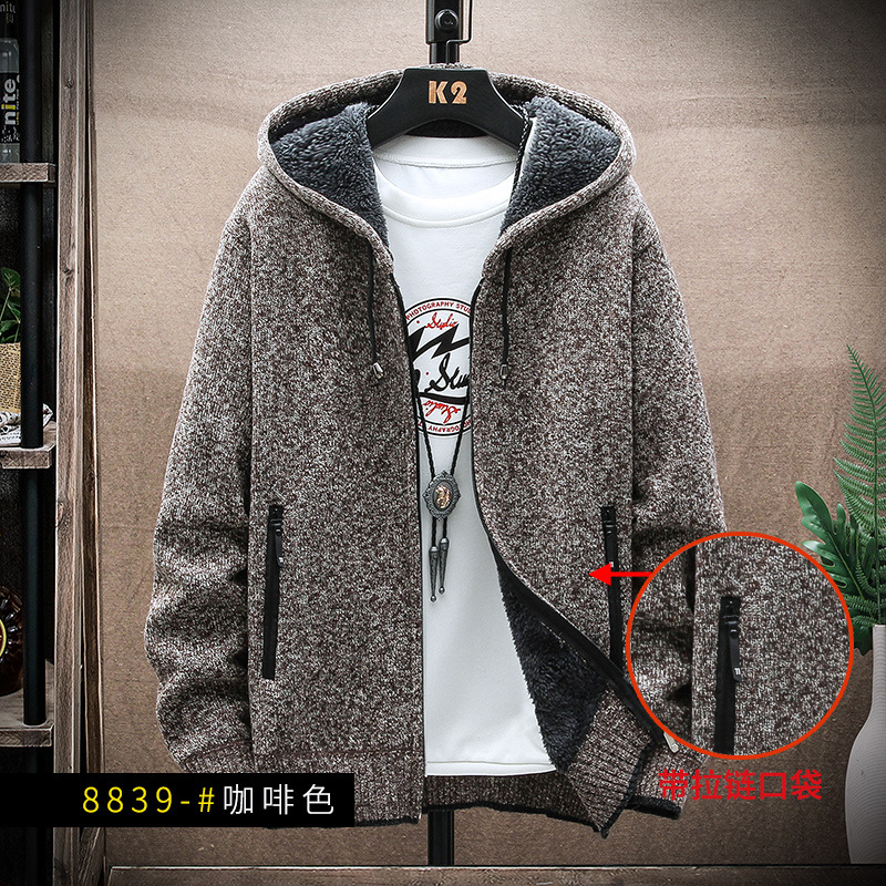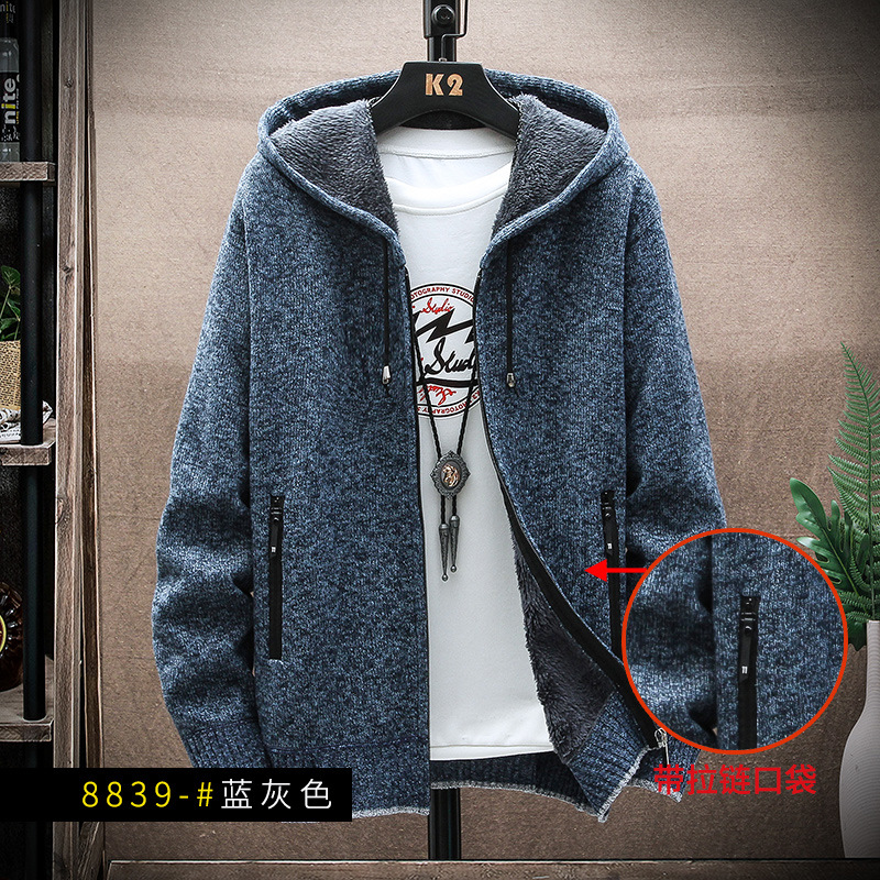 남성용 후드 니트 가디건 2025 새로운 한국 스타일 트렌디한 가을 겨울 코트 플러스 벨벳 두꺼운 재킷 탑스토어 가기