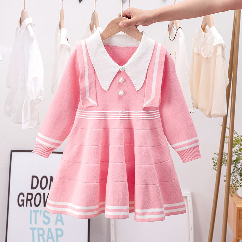 여아 원피스 봄과 가을 2023 새로운 서양 스타일 아동 의류 대학 스타일 공주 스커트 어린이 스웨터 니트 스커트스토어 가기