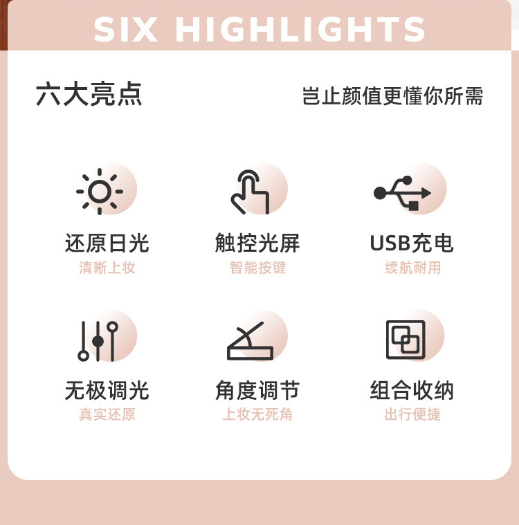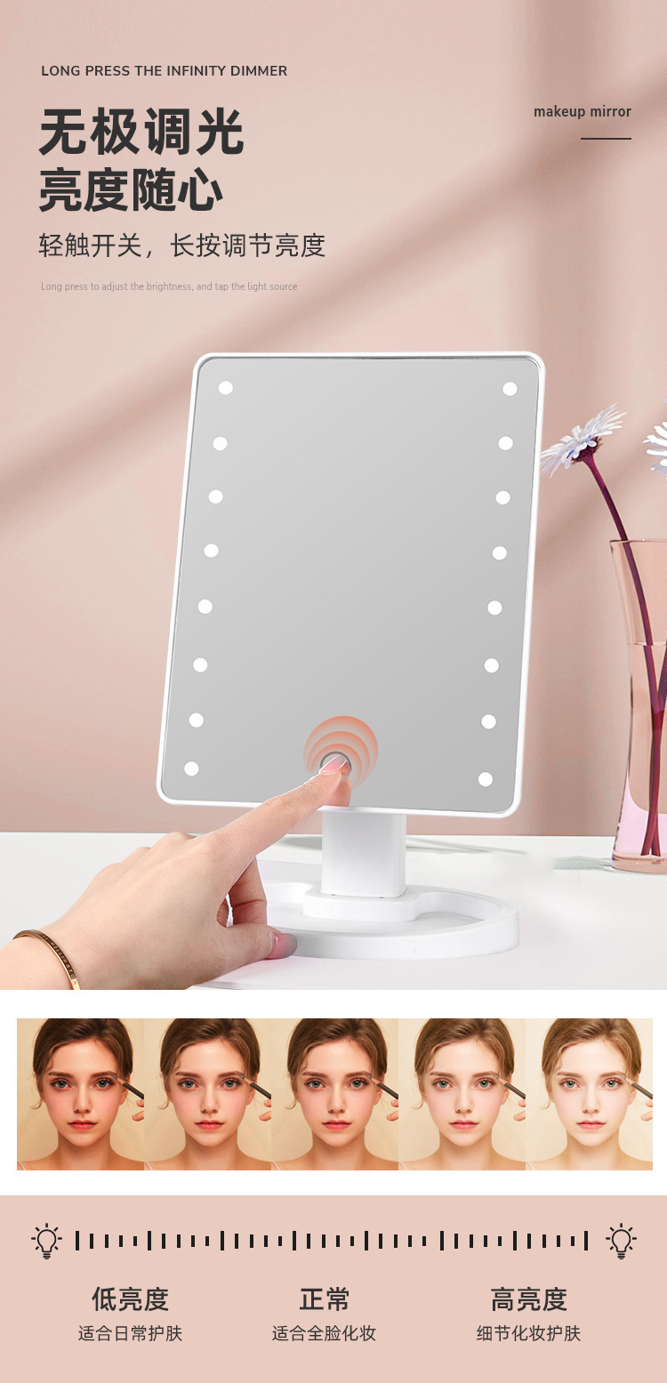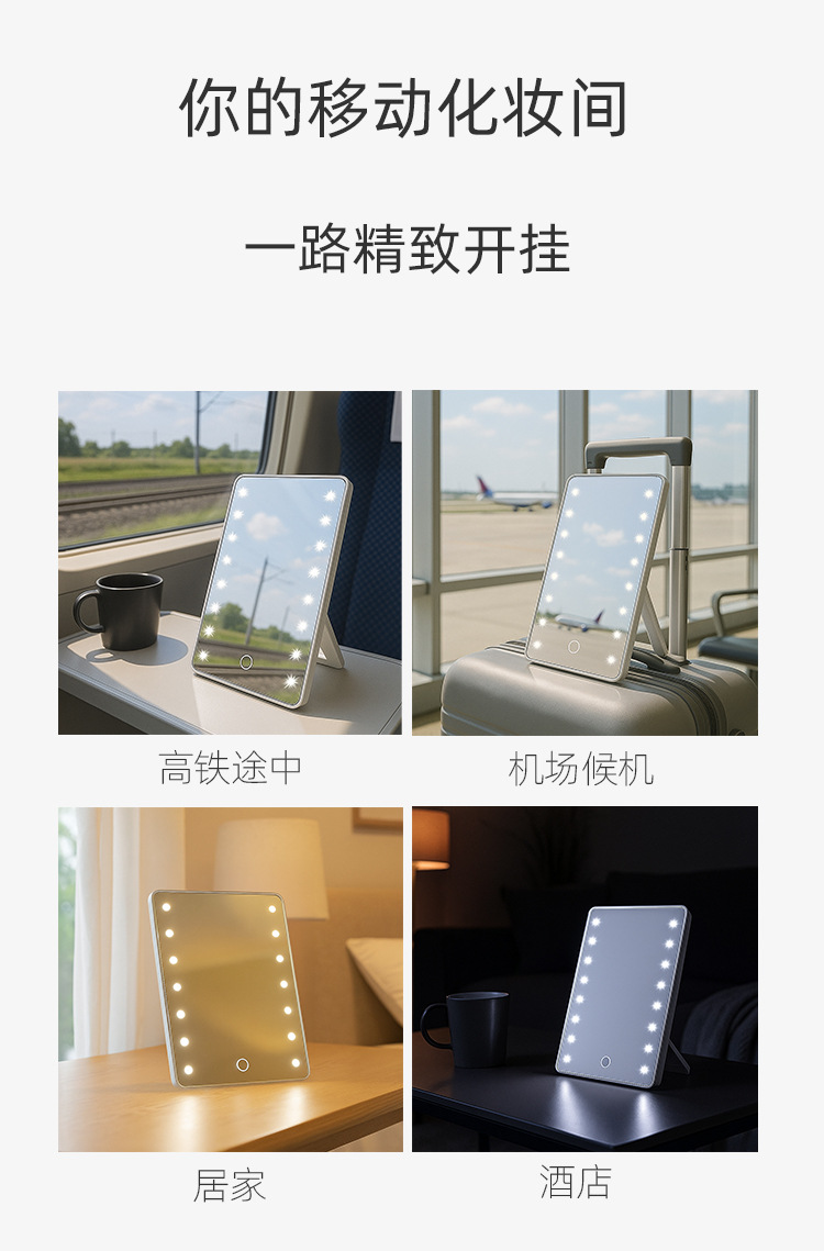 크로스보더 LED 조명 화장 거울, 소형 보조 조명, 휴대용 소형 거울, 기숙사 탁상용 화장 거울스토어 가기