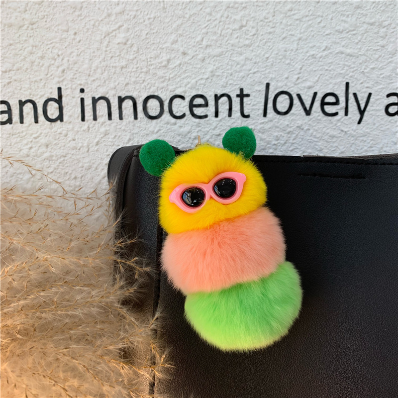 2021 새로운 애벌레 열쇠 고리 귀여운 만화 봉제 가방 펜던트 토끼 헤어 볼 보석 자동차 교수형 장식품스토어 가기