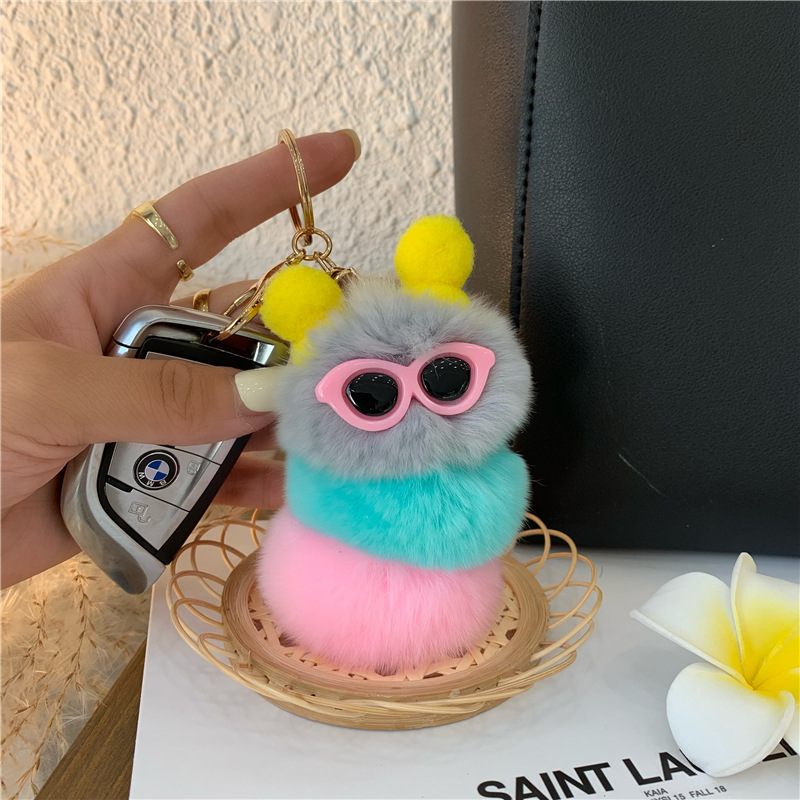 2021 새로운 애벌레 열쇠 고리 귀여운 만화 봉제 가방 펜던트 토끼 헤어 볼 보석 자동차 교수형 장식품