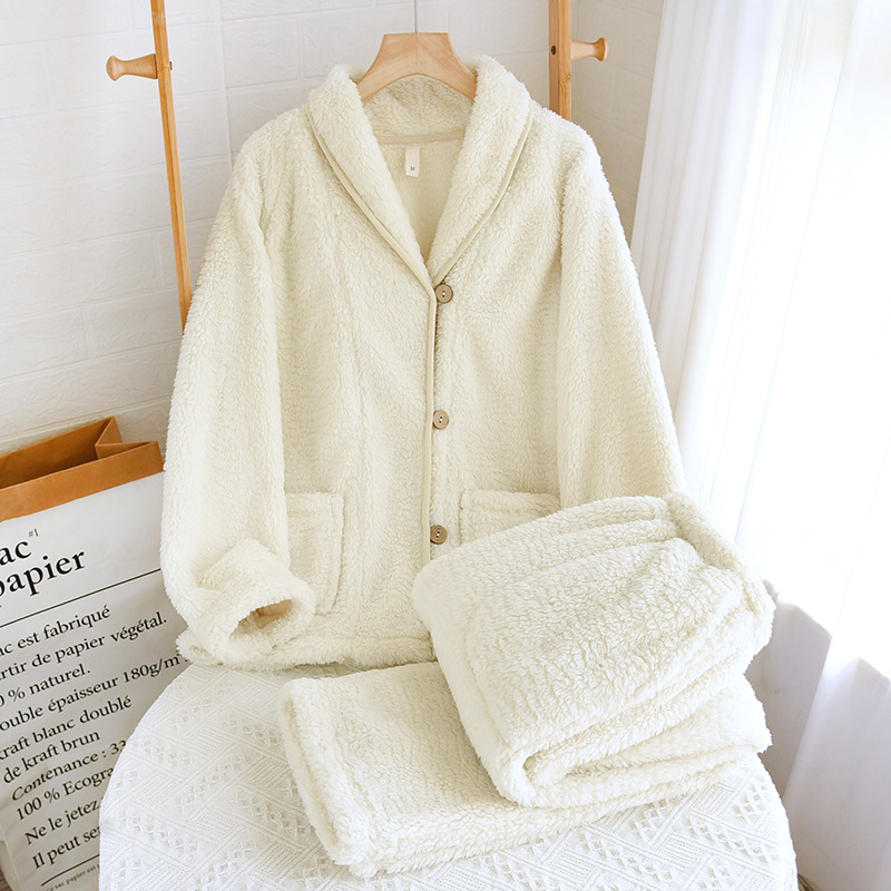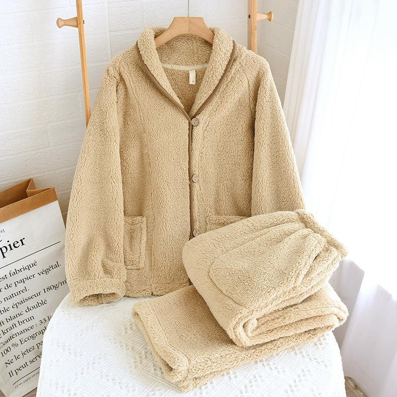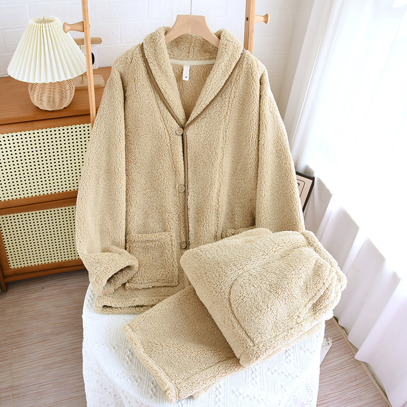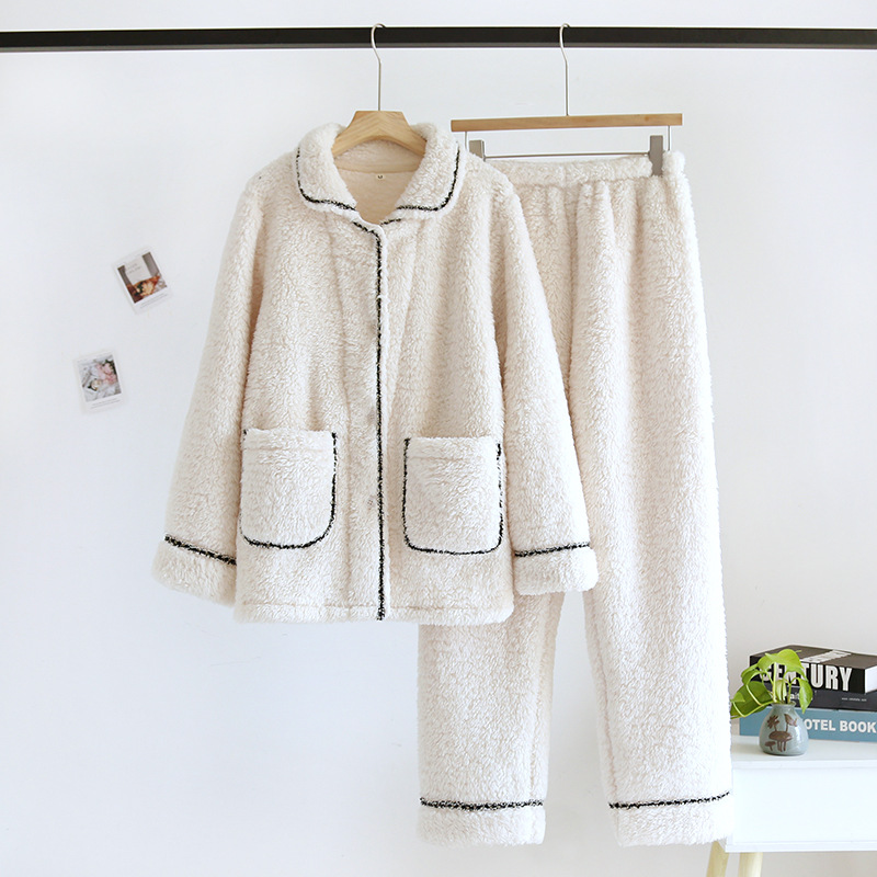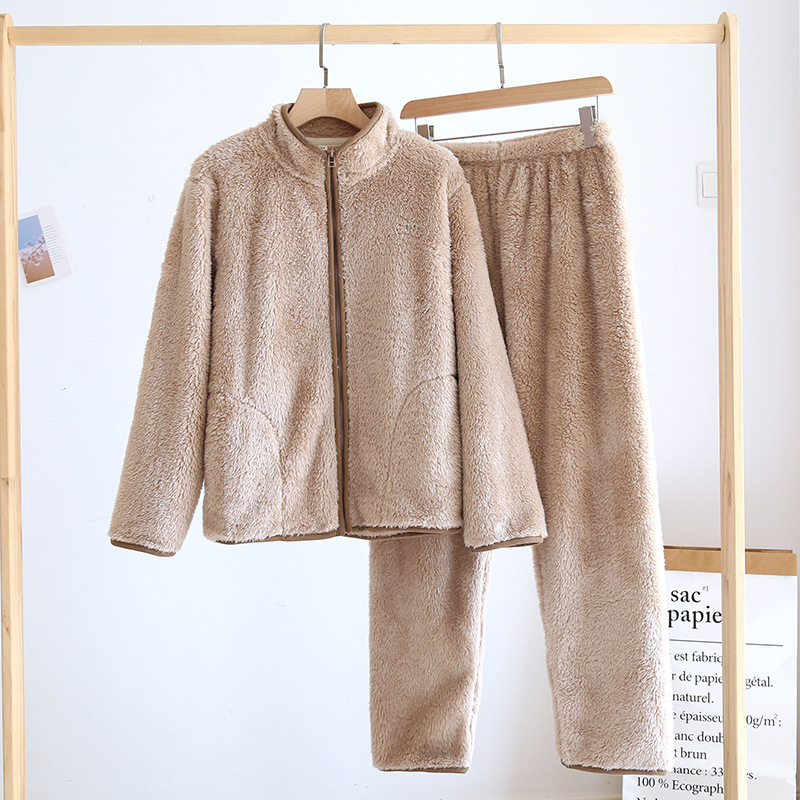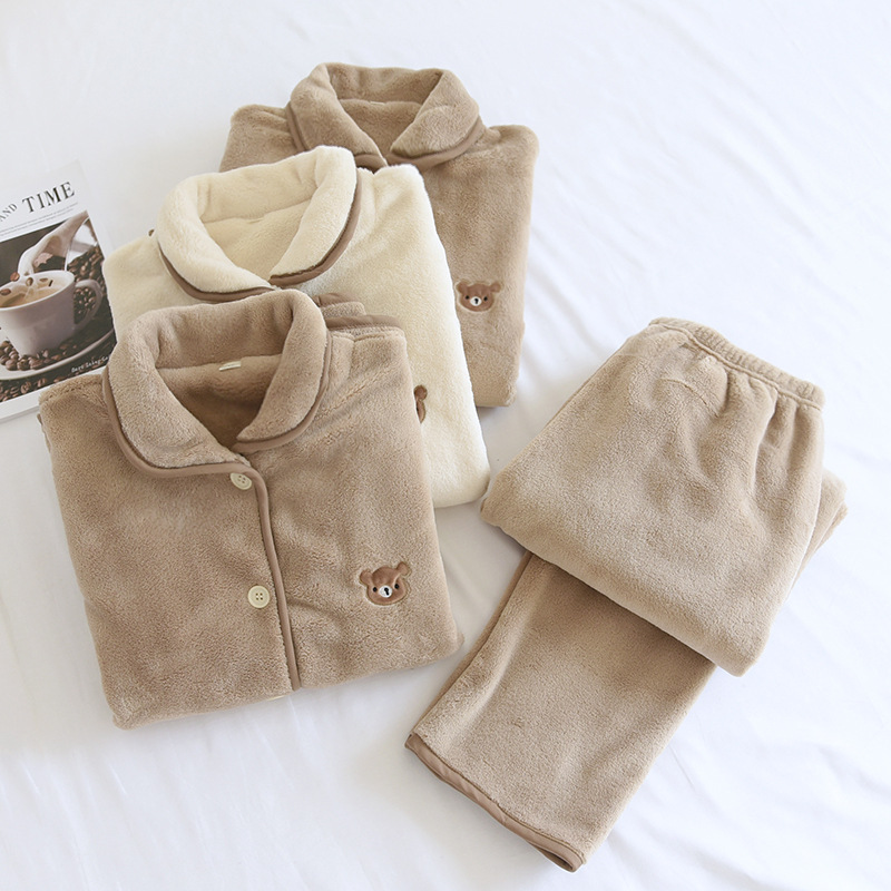 여성과 남성을 위한 산호 벨벳 잠옷, 가을 겨울 커플 세트, 일본식 캐주얼 벨벳 두꺼운 따뜻한 홈웨어