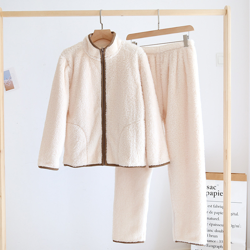 여성과 남성을 위한 산호 벨벳 잠옷, 가을 겨울 커플 세트, 일본식 캐주얼 벨벳 두꺼운 따뜻한 홈웨어스토어 가기