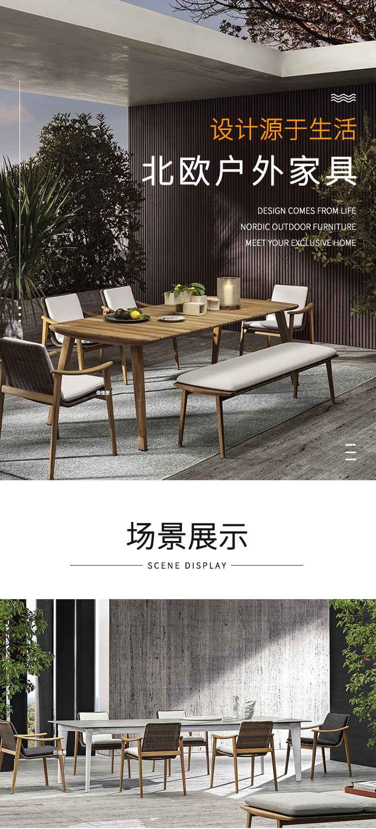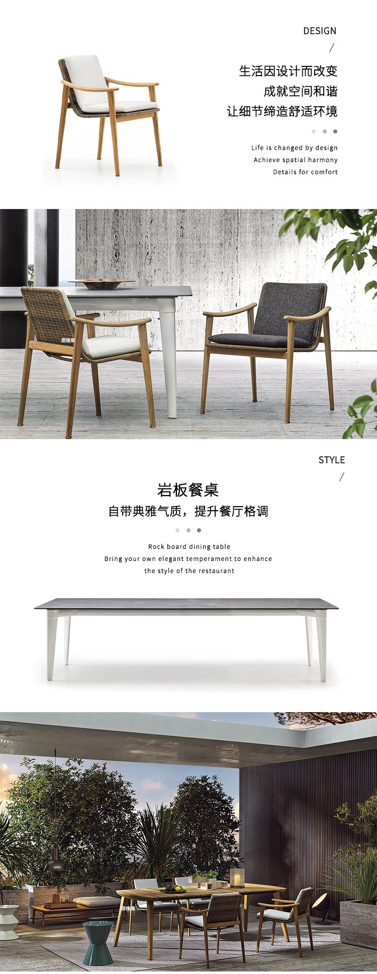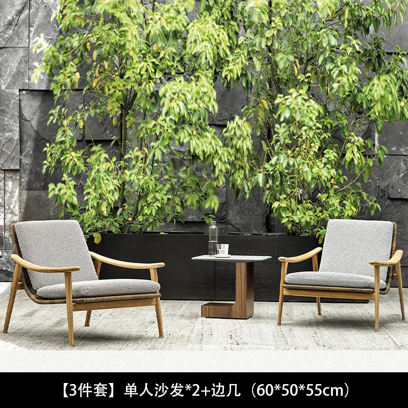 북유럽 간단한 야외 레저 테이블과 의자 조합 등나무 의자 소파 단단한 나무 티크 록 보드 커피 테이블 긴 테이블 정원 발코니스토어 가기