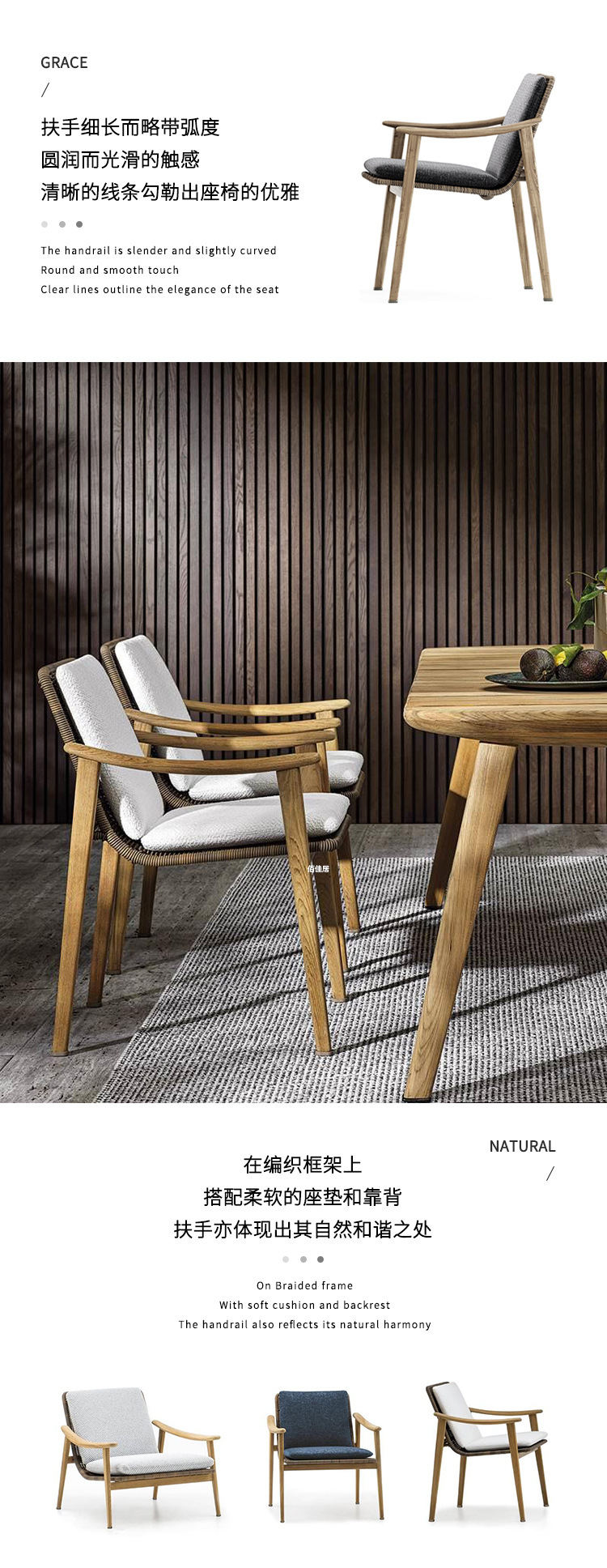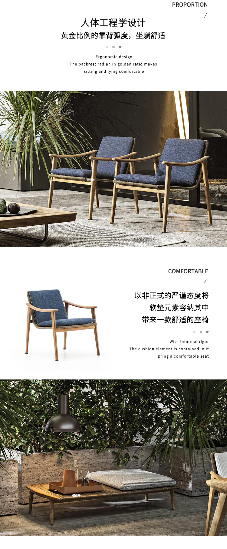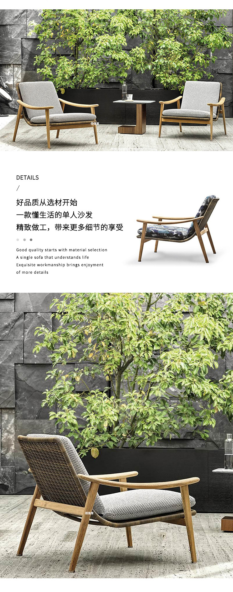 북유럽 간단한 야외 레저 테이블과 의자 조합 등나무 의자 소파 단단한 나무 티크 록 보드 커피 테이블 긴 테이블 정원 발코니스토어 가기