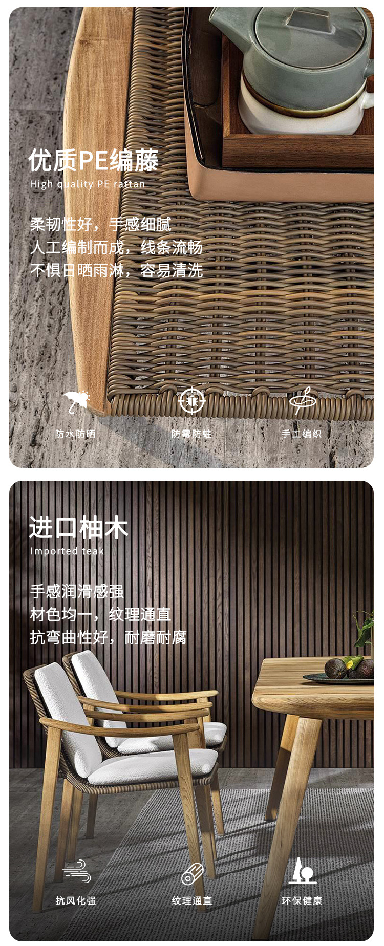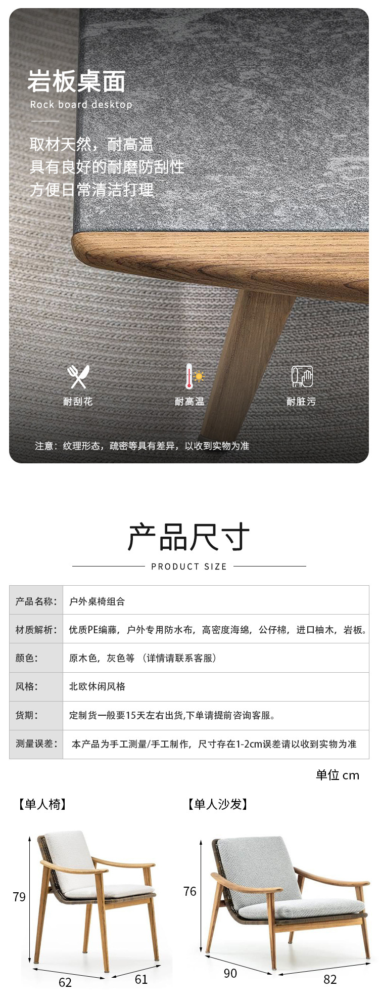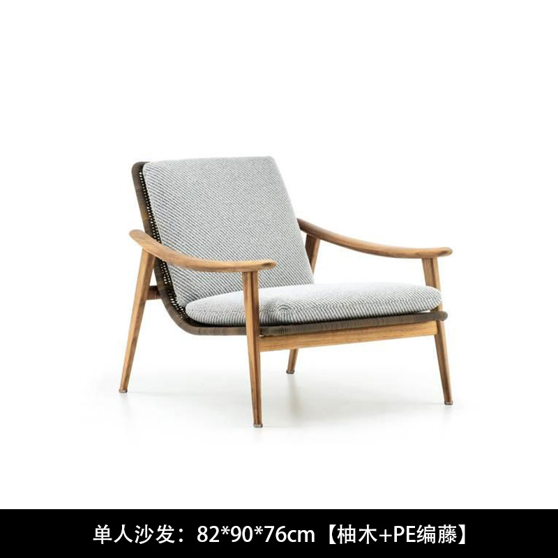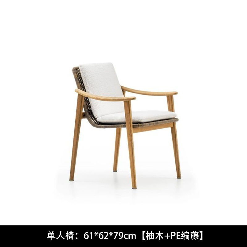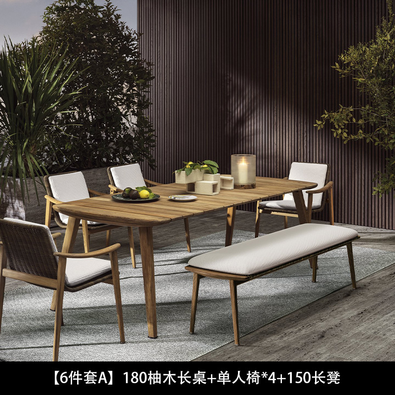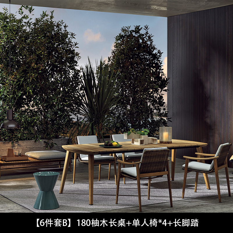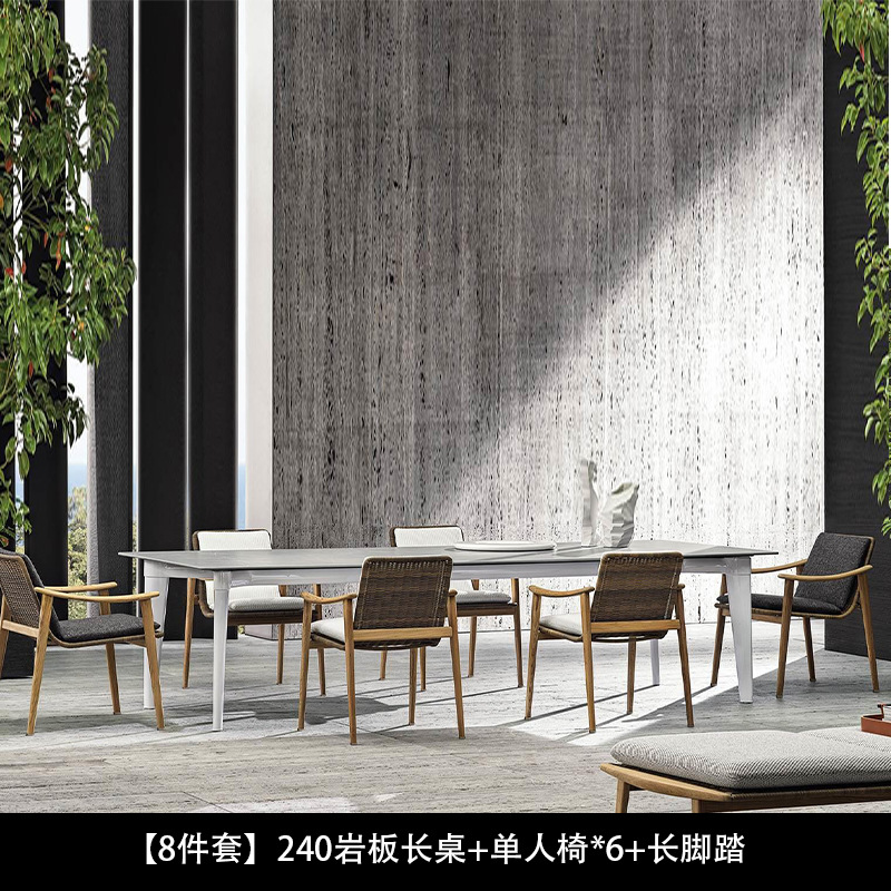 북유럽 간단한 야외 레저 테이블과 의자 조합 등나무 의자 소파 단단한 나무 티크 록 보드 커피 테이블 긴 테이블 정원 발코니