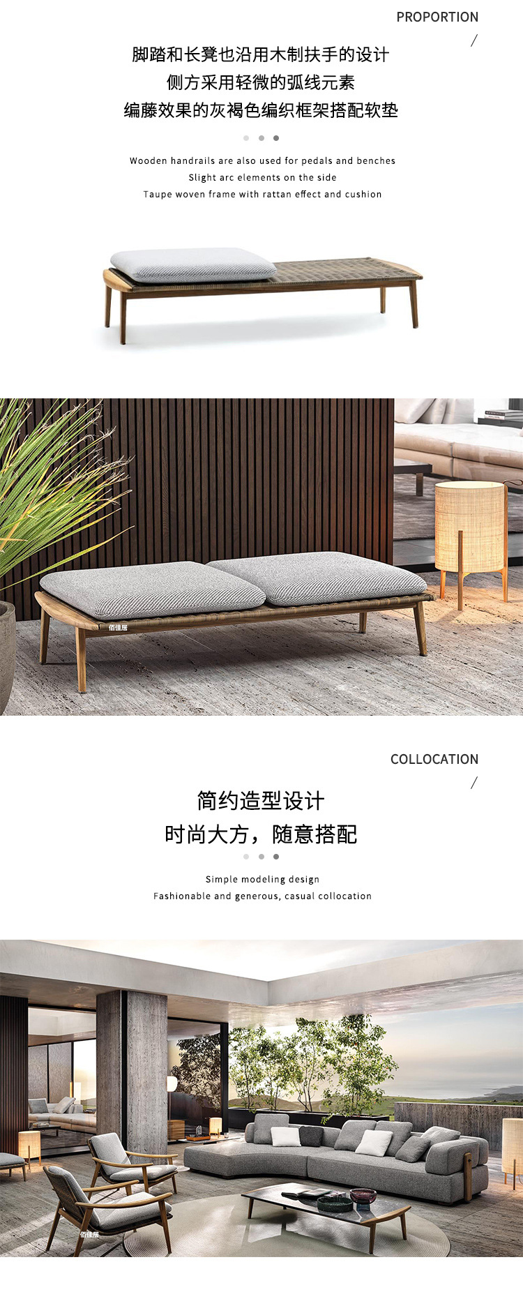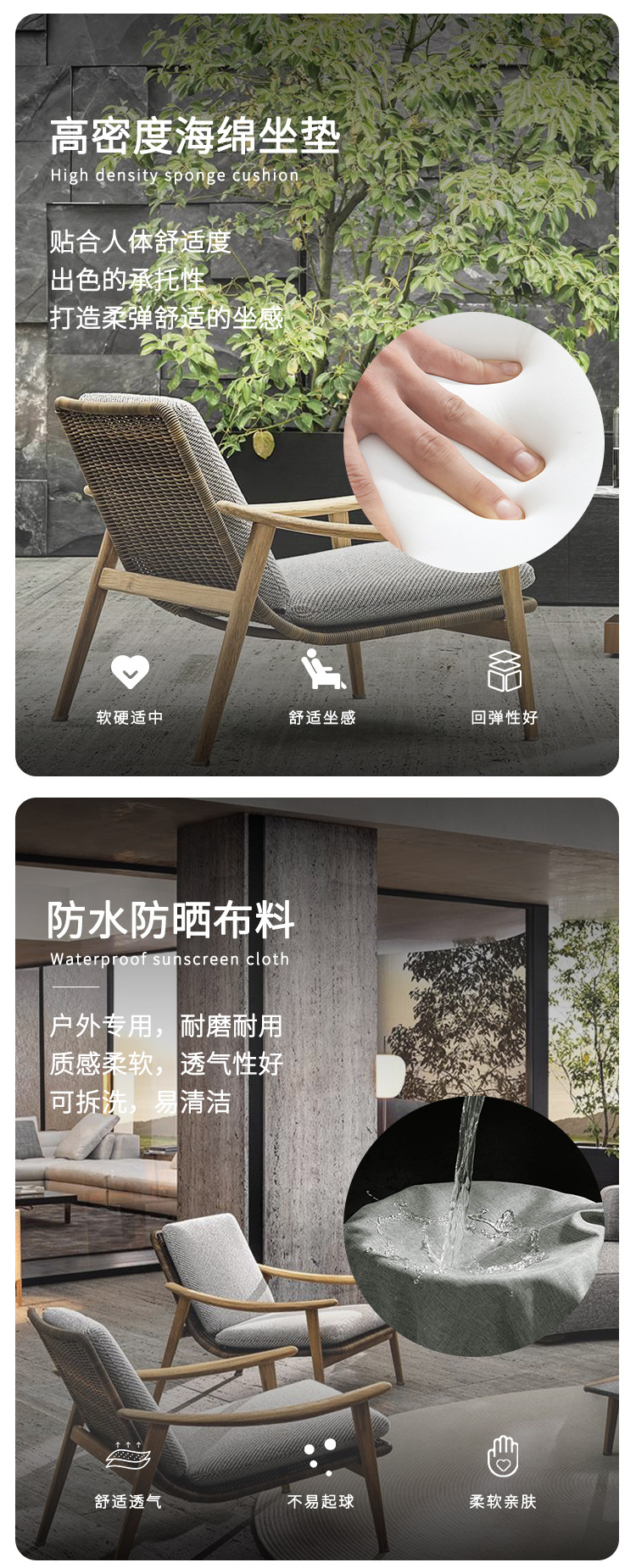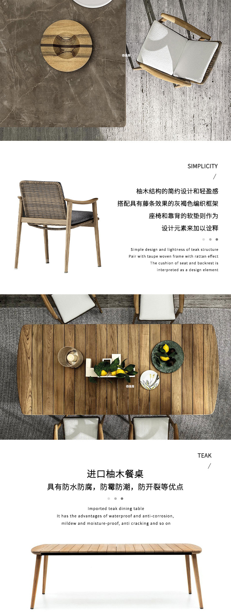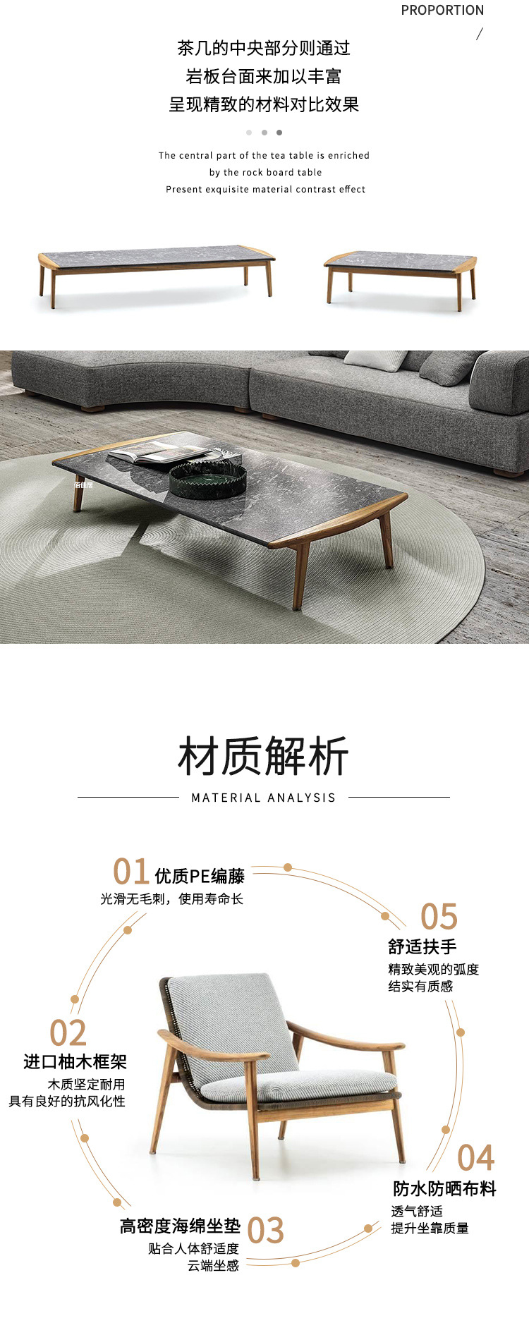 북유럽 간단한 야외 레저 테이블과 의자 조합 등나무 의자 소파 단단한 나무 티크 록 보드 커피 테이블 긴 테이블 정원 발코니