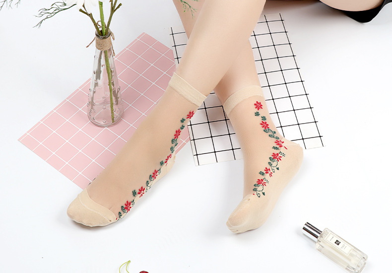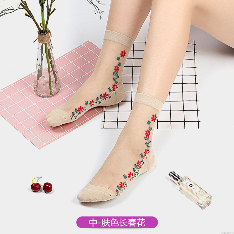 새로운 미드 튜브 스킨 컬러 플라워 시리즈 크리스탈 스타킹 어린이 면 바닥 미끄럼 방지 후크 실크 제조 업체 도매스토어 가기
