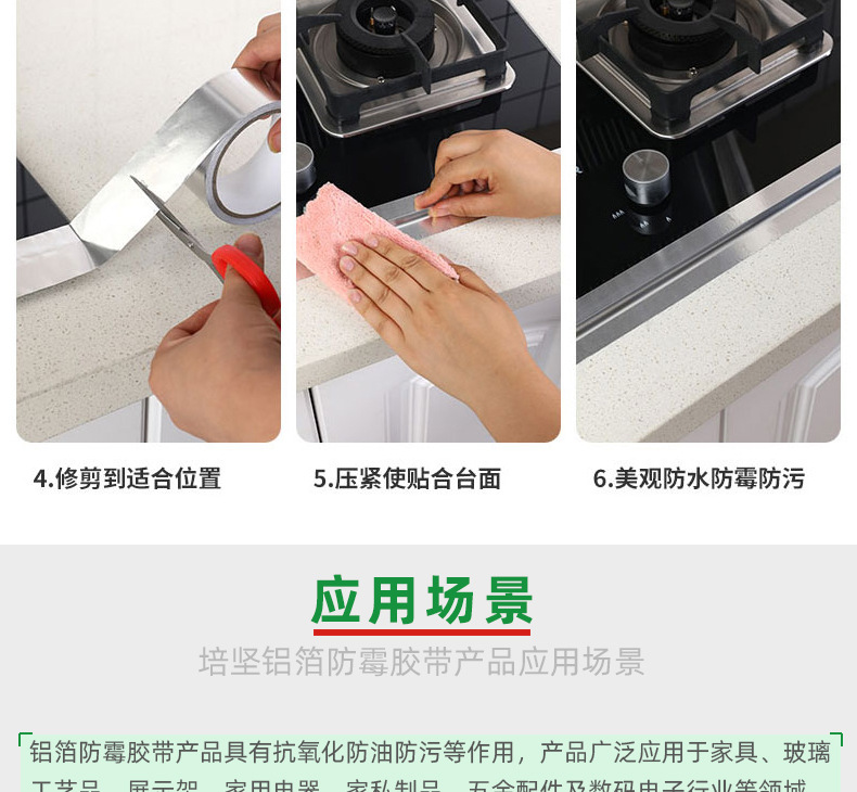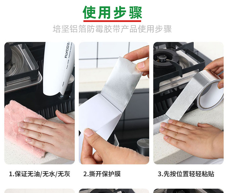 주방 고온 알루미늄 호일 테이프 스토브 자체 접착 기름 방지 스티커 방습 곰팡이 방지 방수 심 테이프 도매