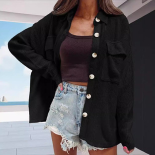 2025 아마존 가을 겨울 셔츠 신상품 독립형 유럽 및 미국 크로스보더 TEMU 여성 의류 단추 캐주얼