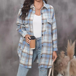 2025 아마존 가을 겨울 셔츠 신상품 독립형 유럽 및 미국 크로스보더 TEMU 여성 의류 단추 캐주얼스토어 가기