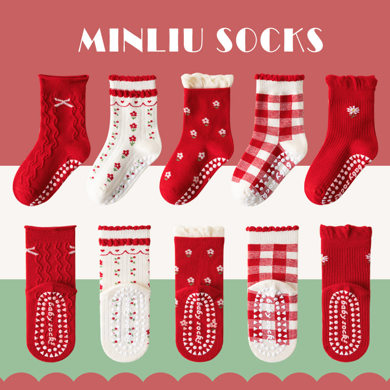 가을과 겨울 어린이 양말 두리안 새로운 분배 미끄럼 방지 아기 양말 만화 핑크 여자 면화 양말 튜브 트램폴린 양말스토어 가기