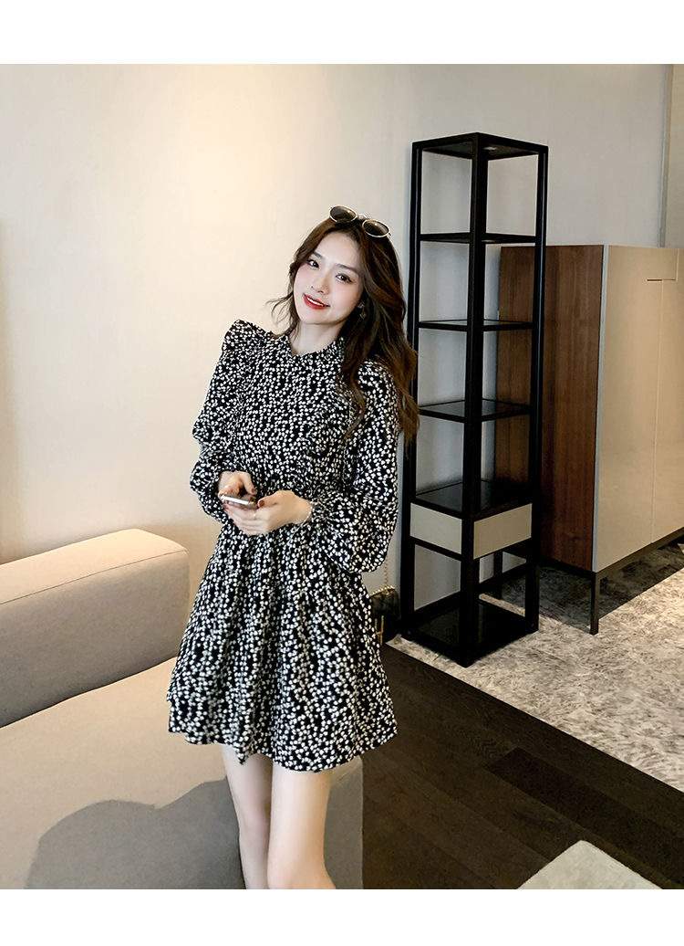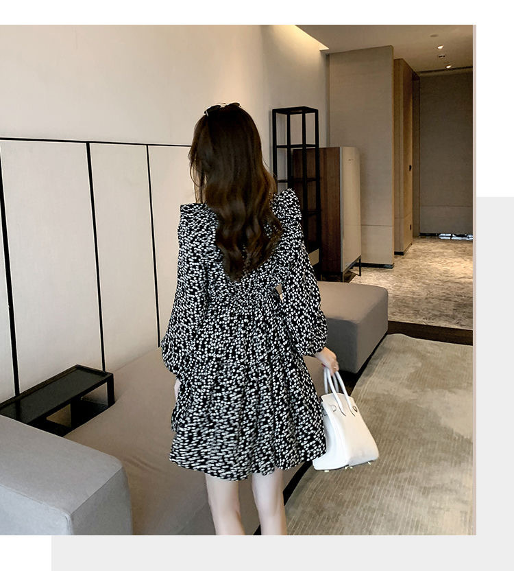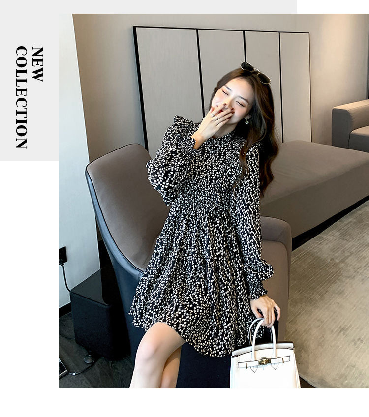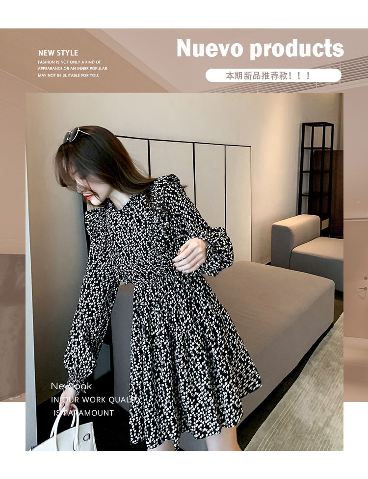 인터넷 연예인 봄과 가을 옷 프랑스 복고풍 햅번 스타일 스몰 사이즈 허리 슬리밍 스커트 여성의 긴 소매 꽃 원피스 여성스토어 가기