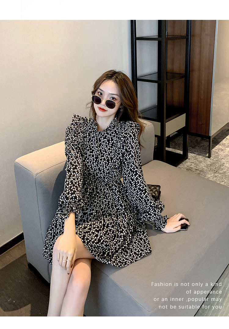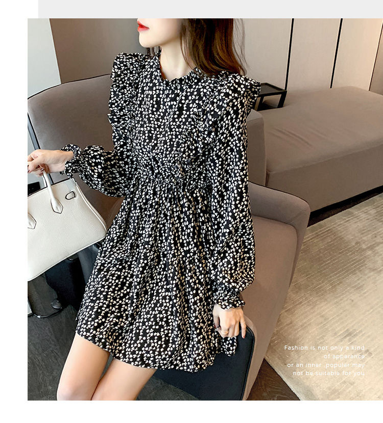 인터넷 연예인 봄과 가을 옷 프랑스 복고풍 햅번 스타일 스몰 사이즈 허리 슬리밍 스커트 여성의 긴 소매 꽃 원피스 여성