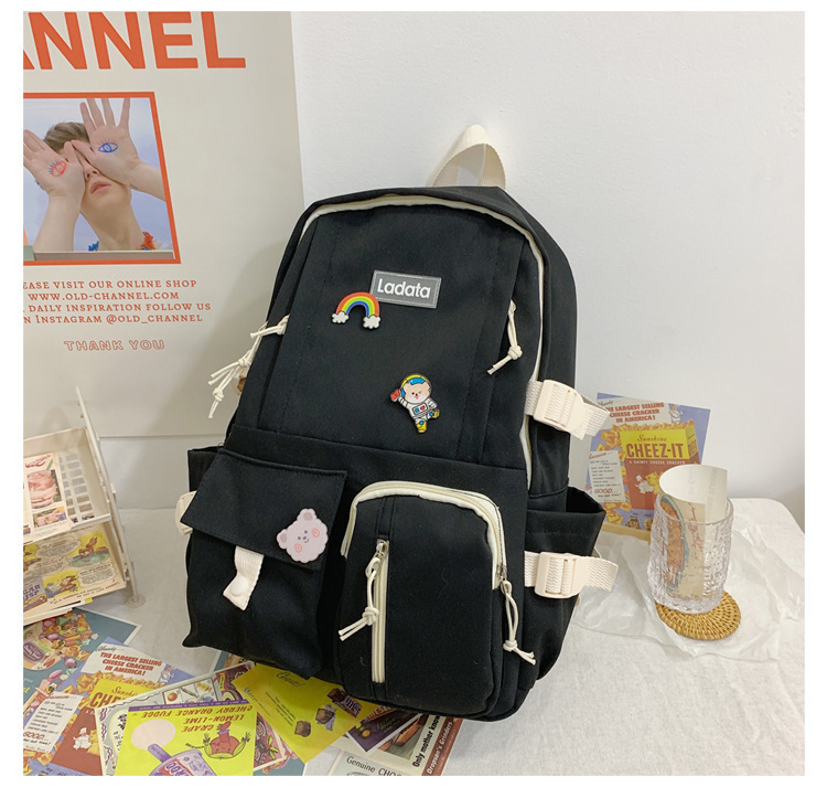 새로운 한국식 중학생 책가방 하라주쿠 얼짱 컬리지 스타일 배낭 로고스토어 가기