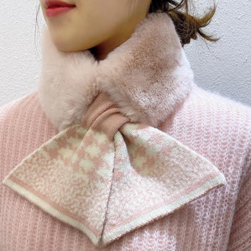 여성용 한국식 인조 렉스 토끼 모피 플러시 스카프 여성용 올 매치 가을과 겨울 치비 크로스 웜 넥스토어 가기