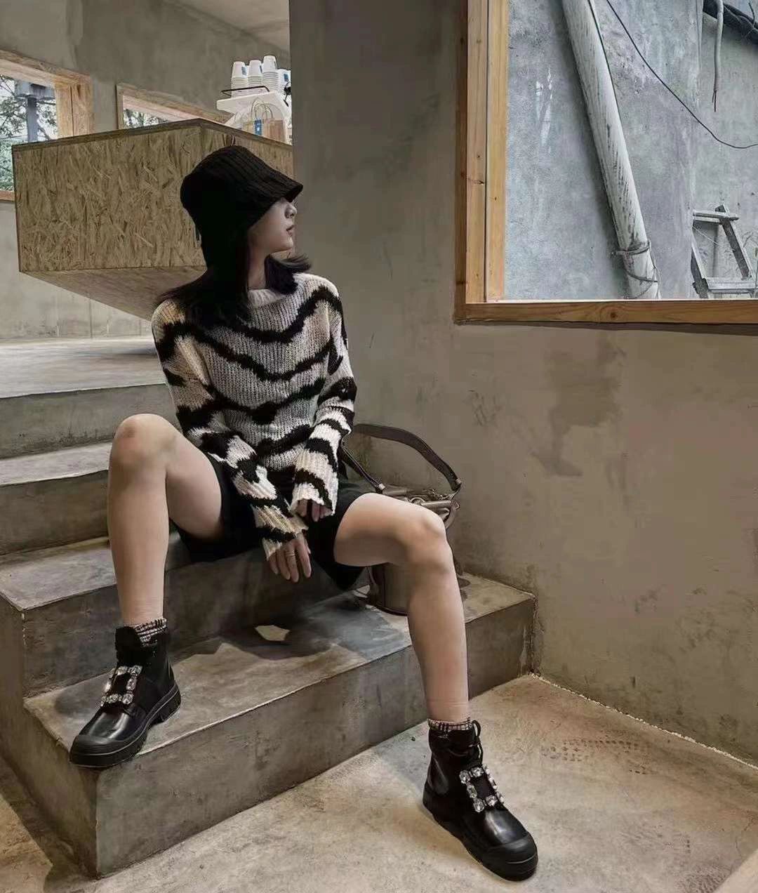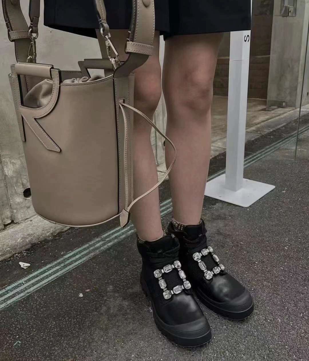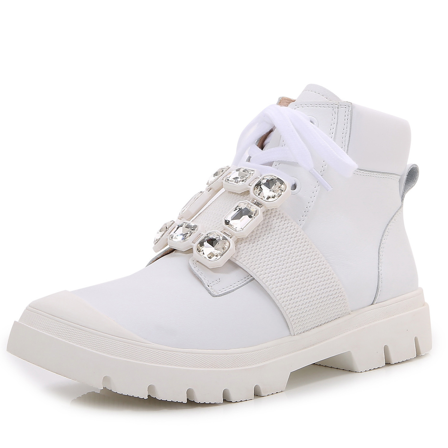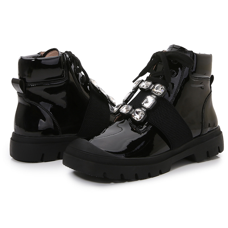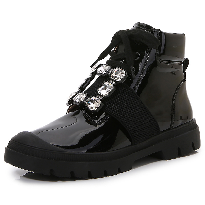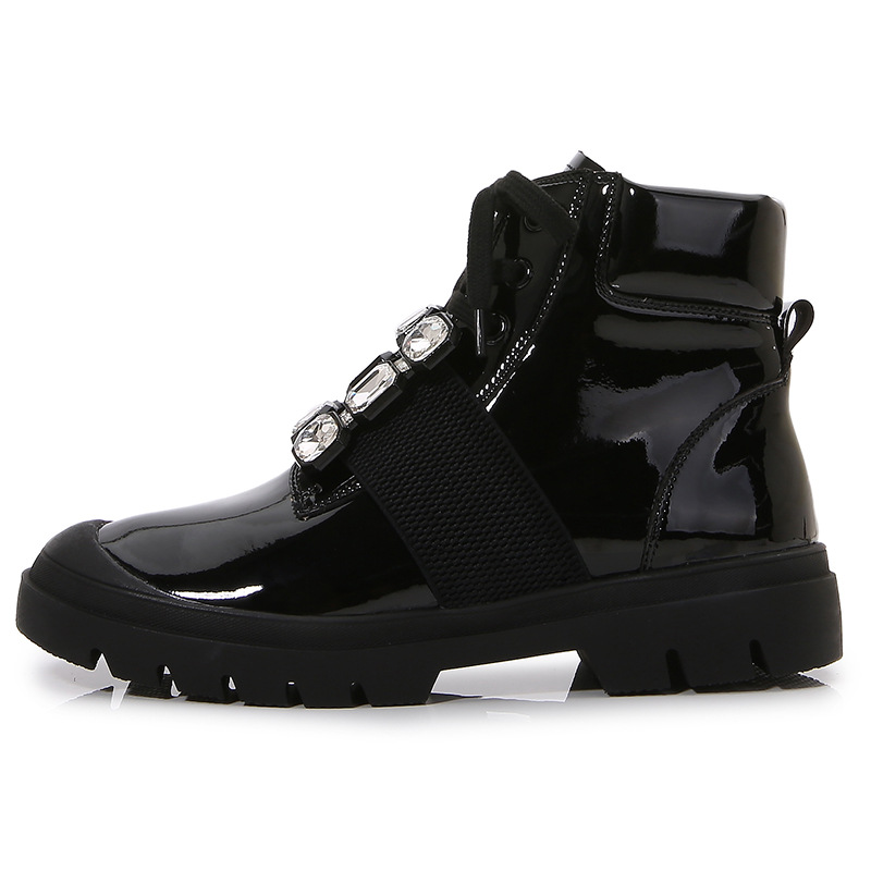 24가지 스타일의 패셔너블한 다이아몬드 버클 운동화 스트랩 플랫 여성 부츠, 편안하고 통기성 좋은 천연 가죽 미드탑 부츠, 에나멜 가죽 패션 부츠스토어 가기