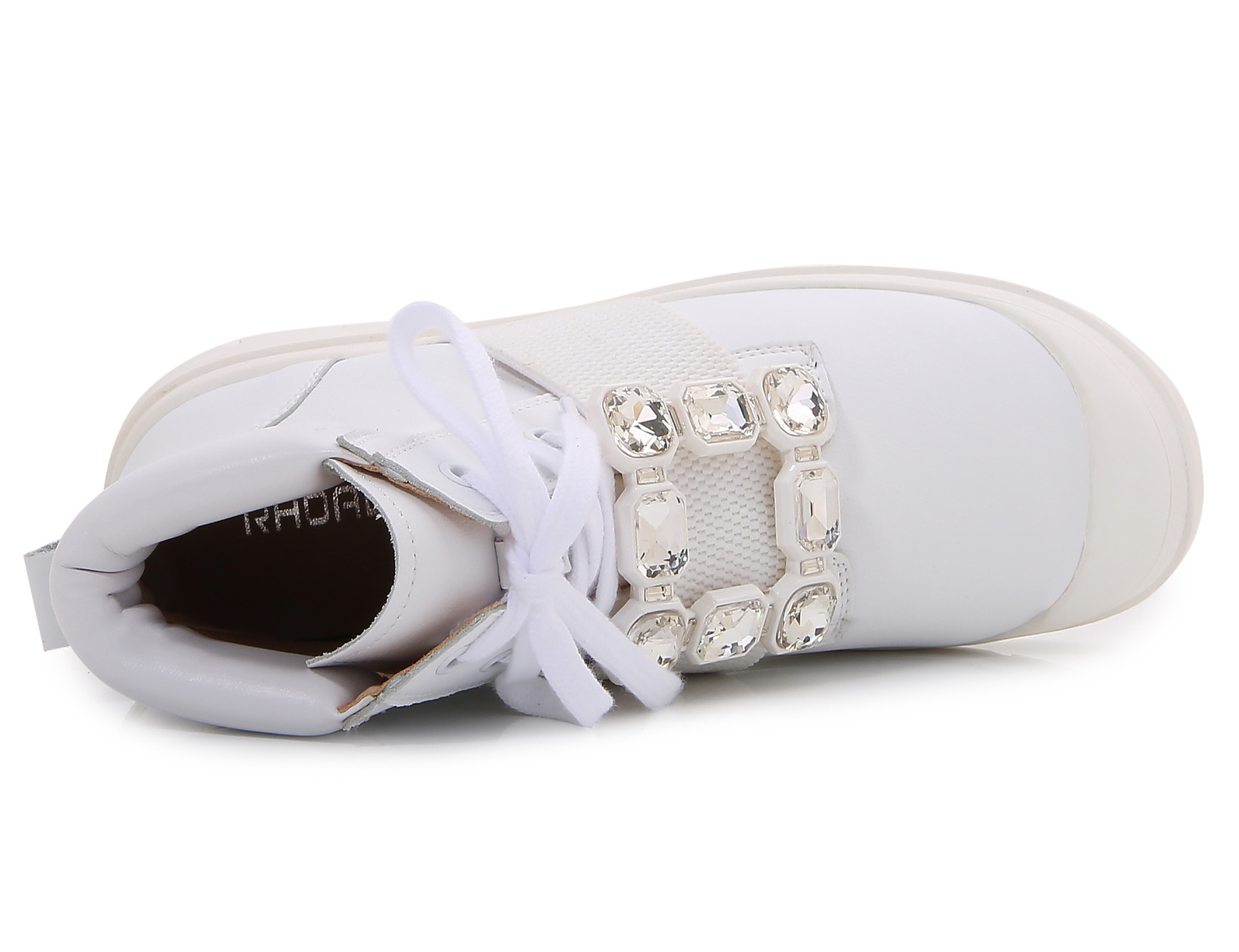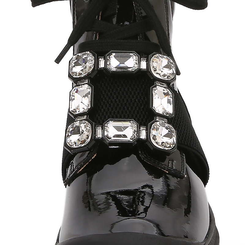 24가지 스타일의 패셔너블한 다이아몬드 버클 운동화 스트랩 플랫 여성 부츠, 편안하고 통기성 좋은 천연 가죽 미드탑 부츠, 에나멜 가죽 패션 부츠