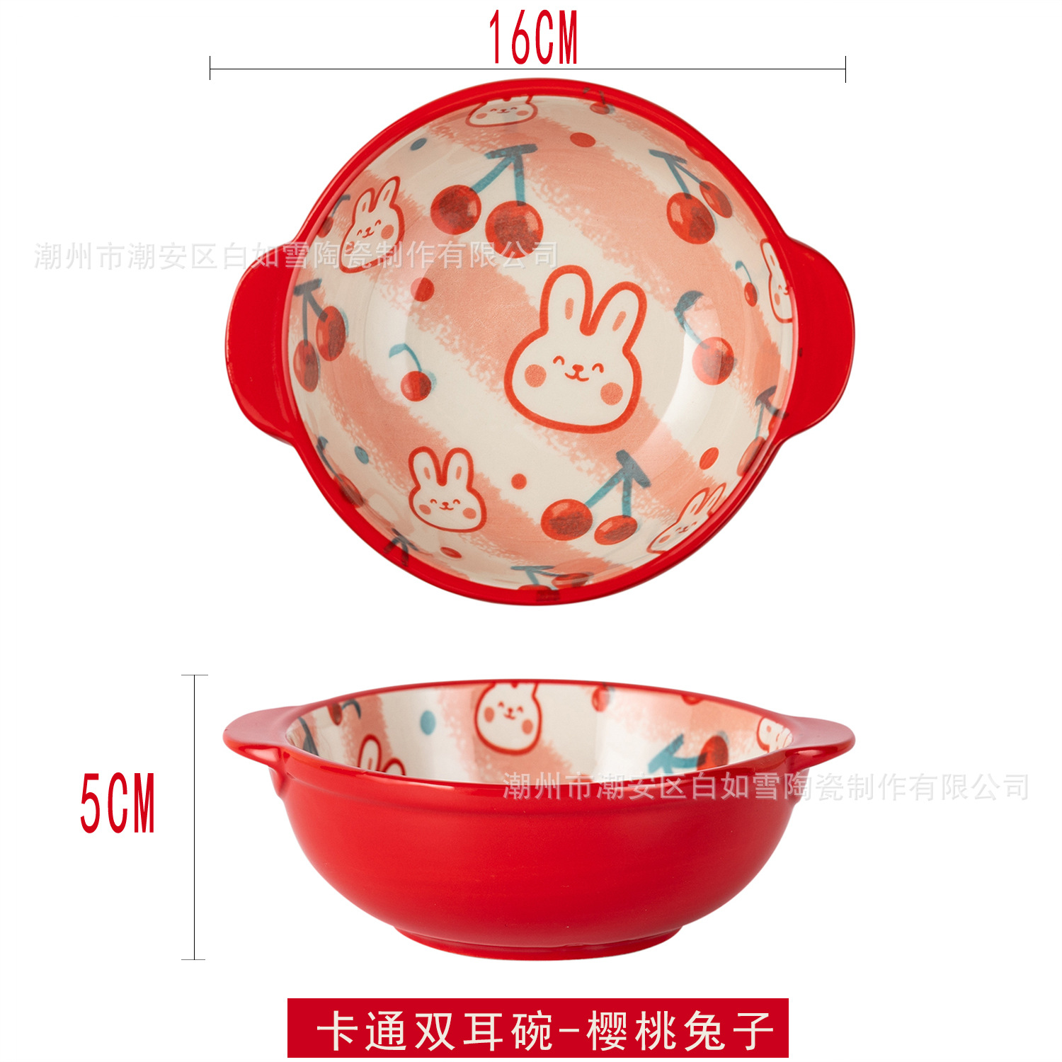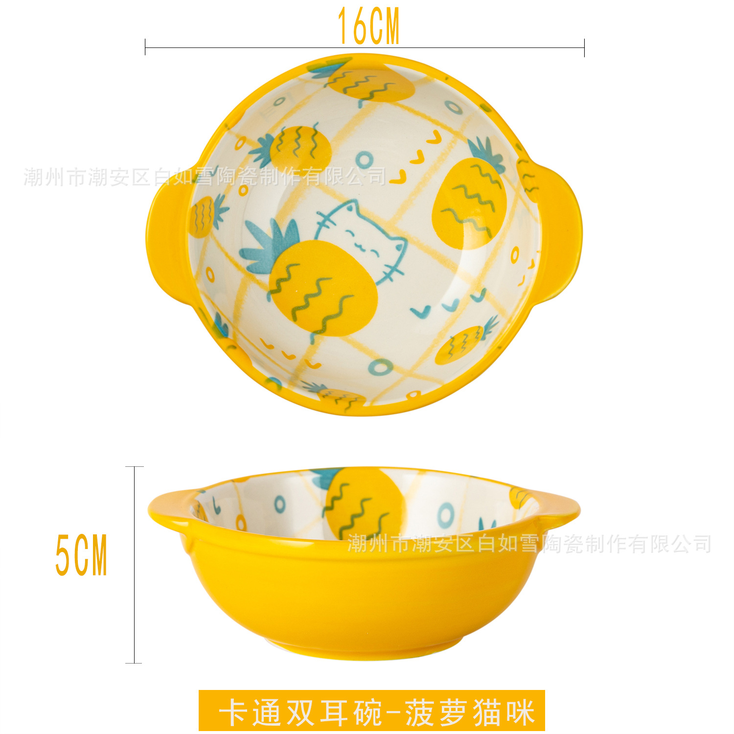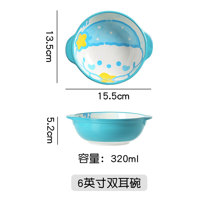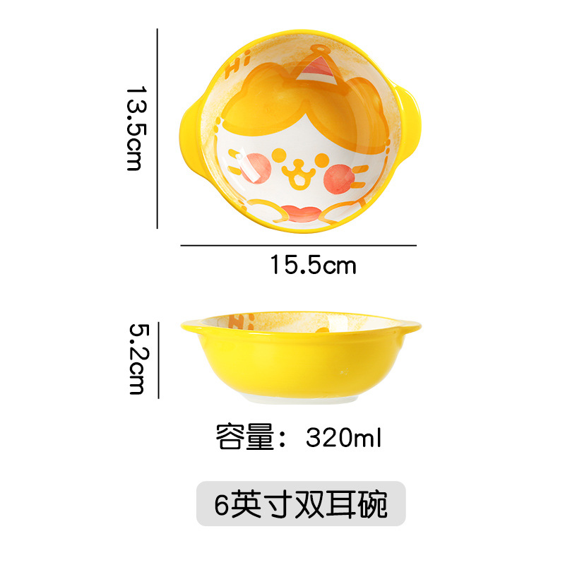일본식 도자기 이중 귀 그릇 만화 동물 과일 그릇 아침 식사 그릇 샐러드 그릇 어린이 손으로 그린 그릇 귀여운 보완 그릇