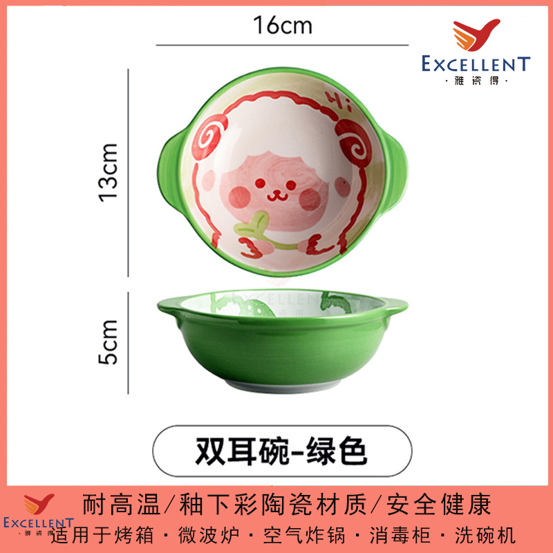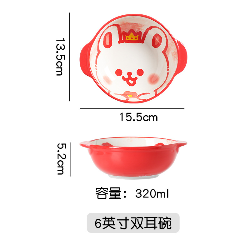 일본식 도자기 이중 귀 그릇 만화 동물 과일 그릇 아침 식사 그릇 샐러드 그릇 어린이 손으로 그린 그릇 귀여운 보완 그릇스토어 가기