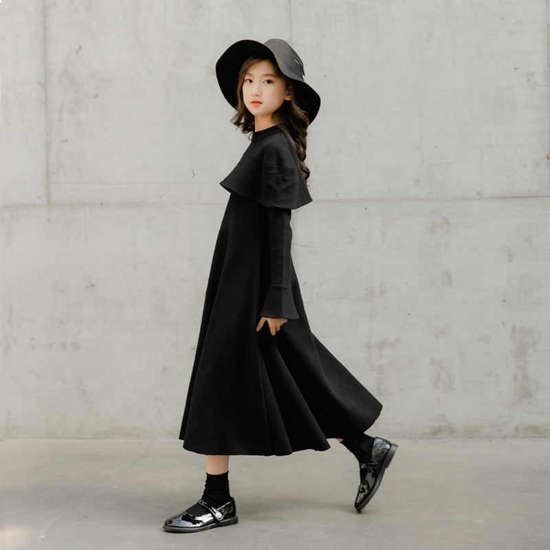 새로운 아동복 와플 우아한 원피스 소녀의 가을과 겨울 긴 소매 어린이 스커트 한국식 부모-자식 풀오버 스커트