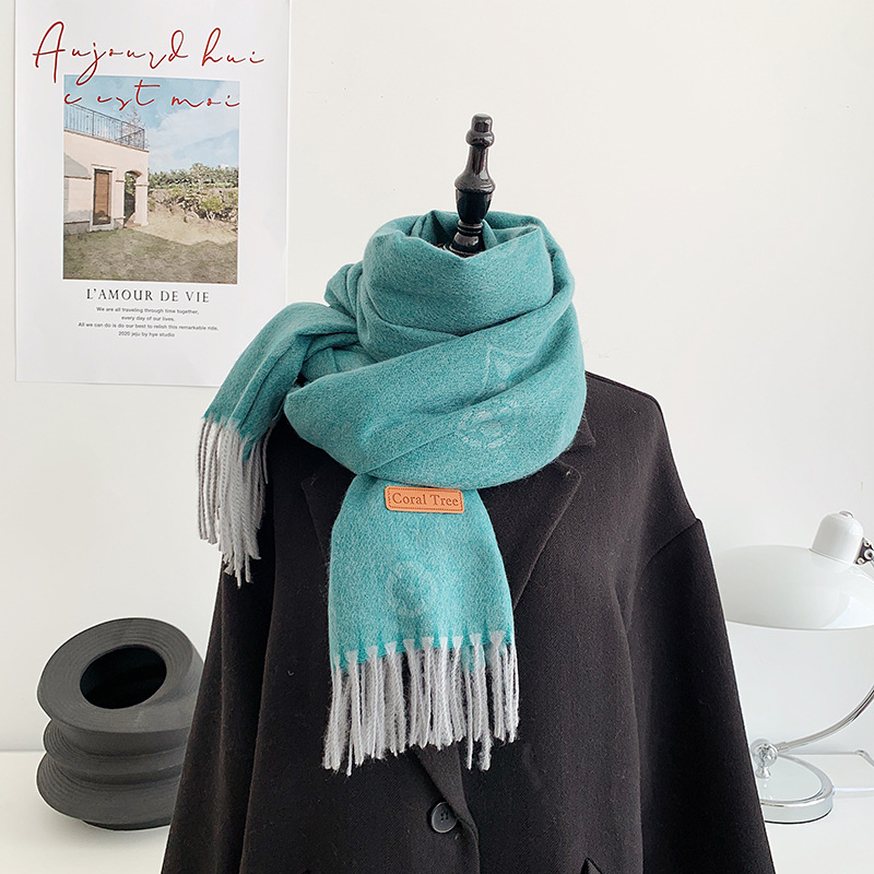 스카프 여성의 가을과 겨울 한국 스타일 모든 경기 일본식 네 잎 꽃 격자 무늬 모조 캐시미어 숄 학생 따뜻한 두꺼운 스카프스토어 가기