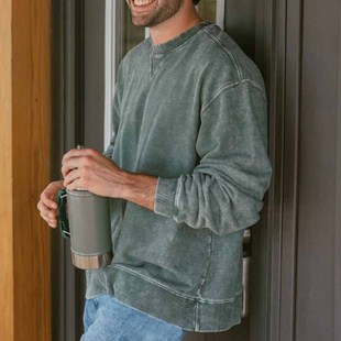 2025秋冬季重磅美式复古长袖 欧美跨境热卖纯色时尚圆领男士卫衣