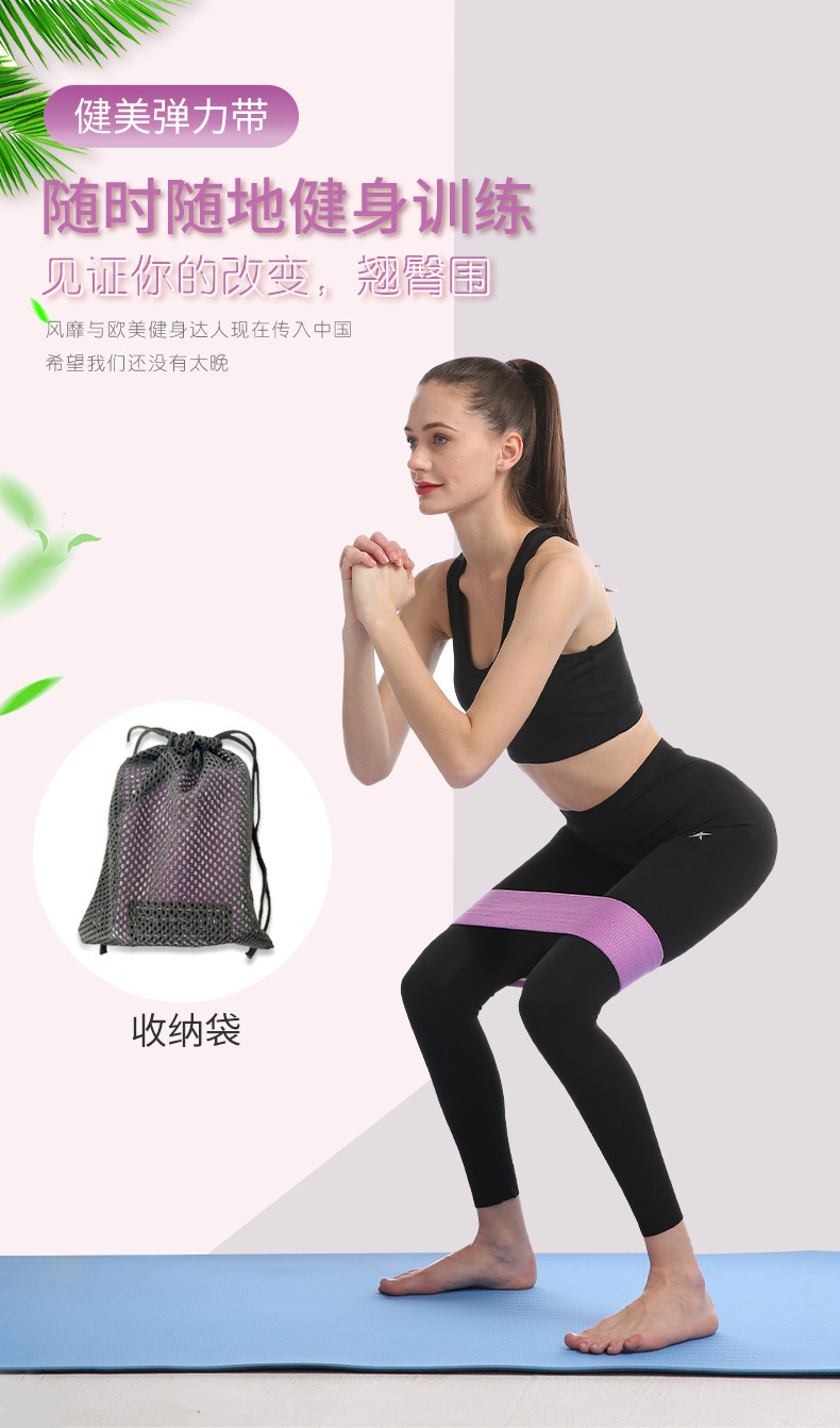 아름다운 엉덩이와 엉덩이 링 긴장 벨트 피트니스 다리 저항 링 엉덩이 저항 벨트 탄성 벨트 피트니스 장비를 갖춘 요가스토어 가기