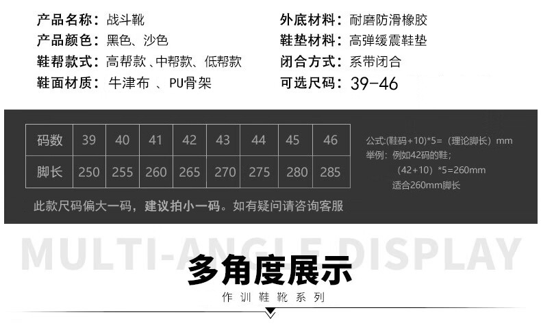 하이 탑 전술 부츠 내마모성 사막 부츠 야외 새로운 전투 부츠 남성 캐주얼 트레이닝 부츠 통기성 등산 신발스토어 가기