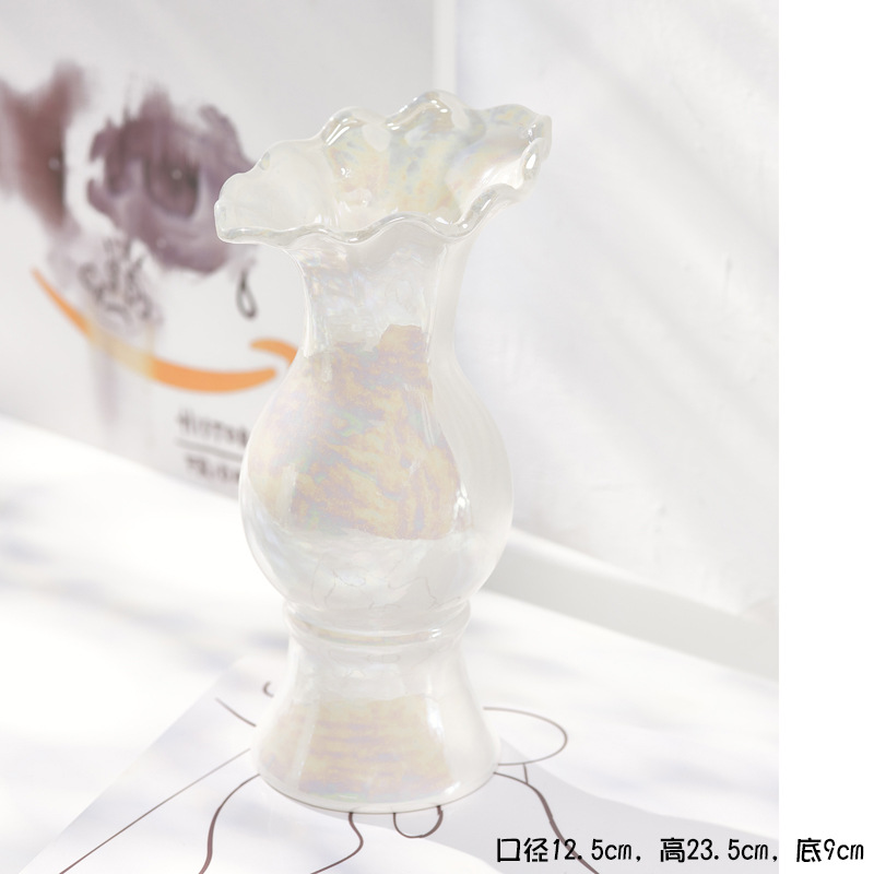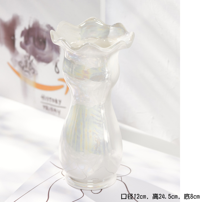 슈멘 인 라이트 럭셔리 펄 화이트 북유럽 단순 세라믹 말린 꽃병 홈 거실 예술 장식 꽃꽂이 장치