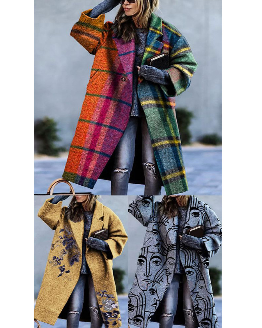 2025 유럽과 미국의 가을 국경 여성복 컬러 매칭 격자 무늬 긴팔 엘 자켓 인쇄 용 및 피닉스 모직 코트