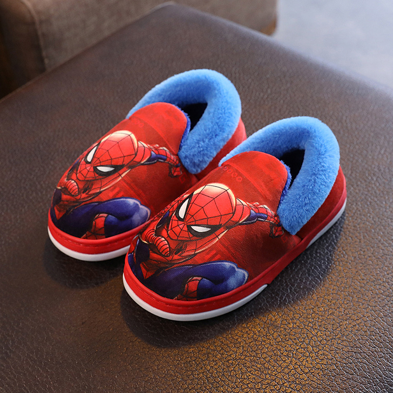스파이더맨 어린이 면화 신발 겨울 만화 어린이 신발 홈 신발 실내 아기 미끄럼 방지 봉제 따뜻한 가방 발 뒤꿈치 면화