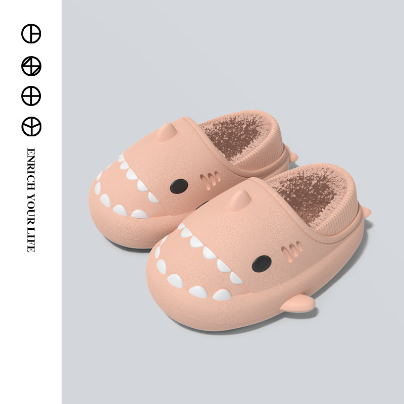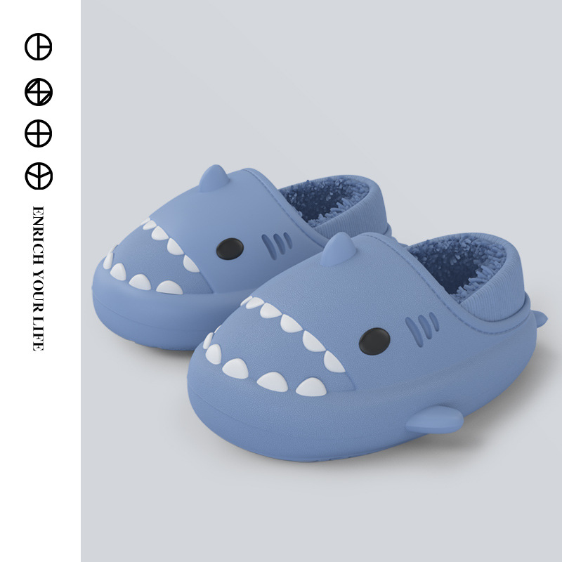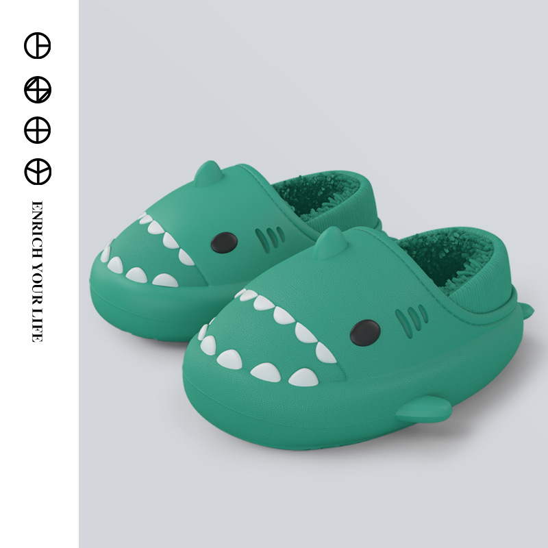어린이 EVA 슬리퍼 가을 겨울 부드러운 밑창 가정용 입체 만화 상어 면 슬리퍼 실내 아기 방수 두꺼운 밑창