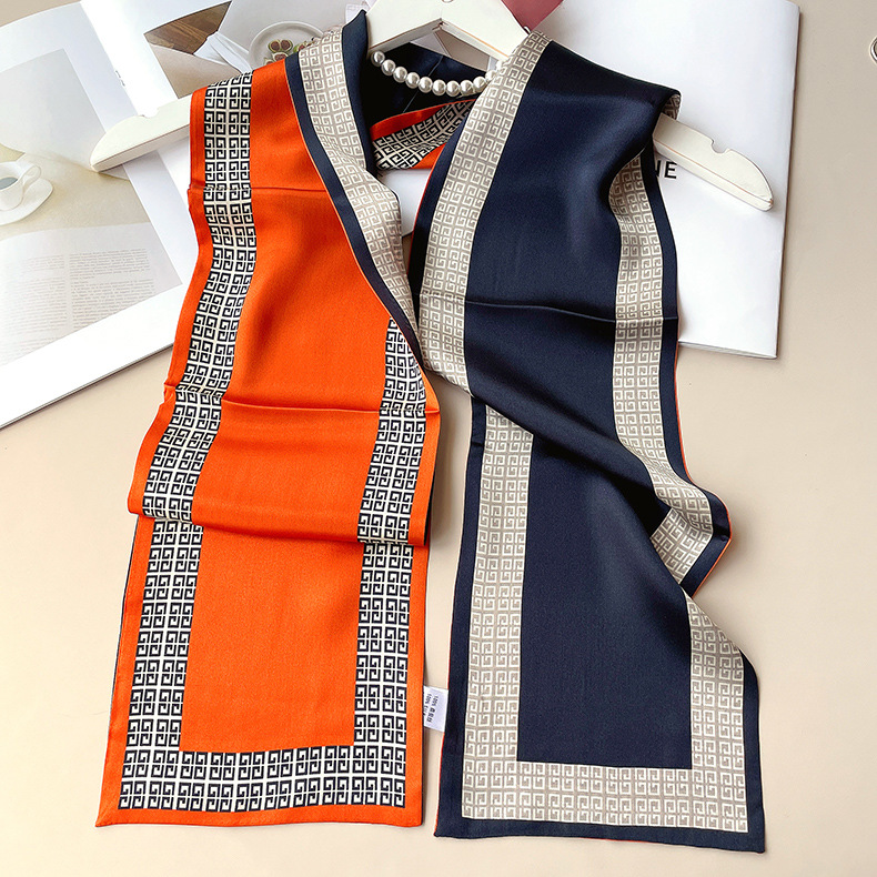 블랙 오렌지 대조 색상 전문 기질 여성 모든 일치 뽕나무 실크 스카프 독특한 웨스턴 스타일 더블 레이어 양면 스카프 리본스토어 가기