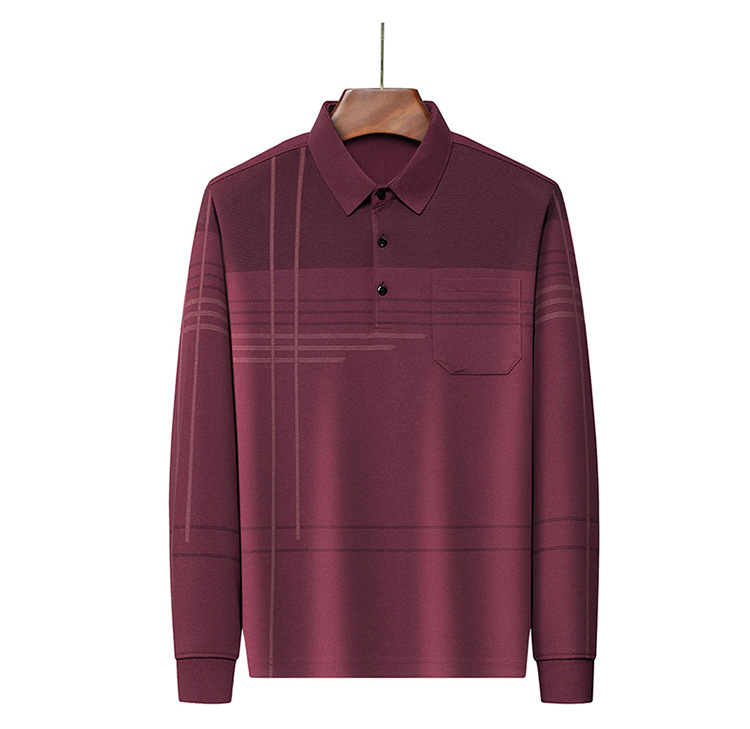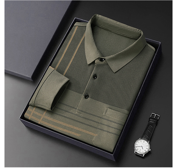 봄과 가을 새로운 남성 라펠 긴팔 2023 중년 폴로 셔츠 스트라이프 캐주얼 리얼 포켓 남성 탑 트렌디스토어 가기