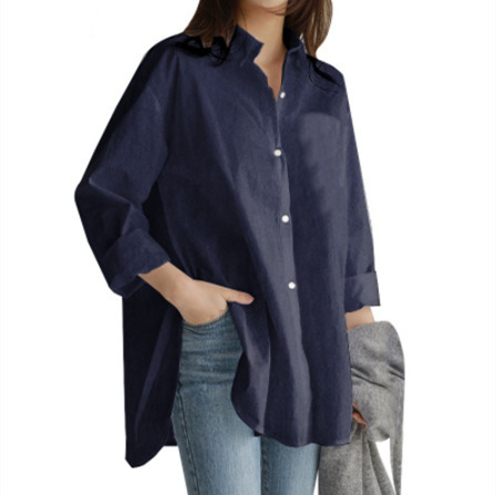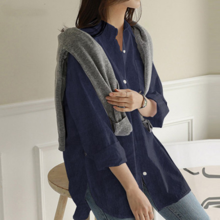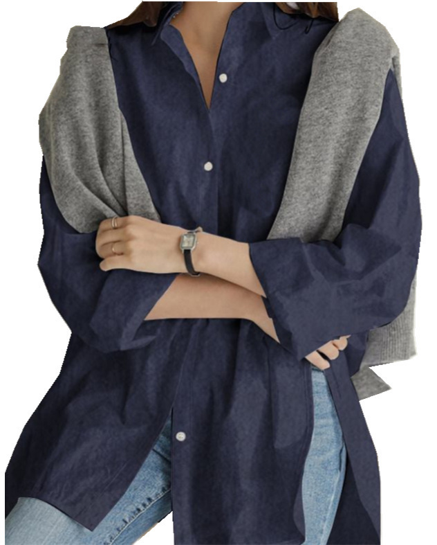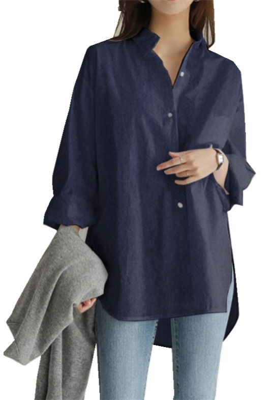 화이트 셔츠 여성의 봄과 가을 새로운 느슨한 긴 소매 예술적 BF 스타일 셔츠 중간 길이 우아한 탑 틈새 디자인스토어 가기