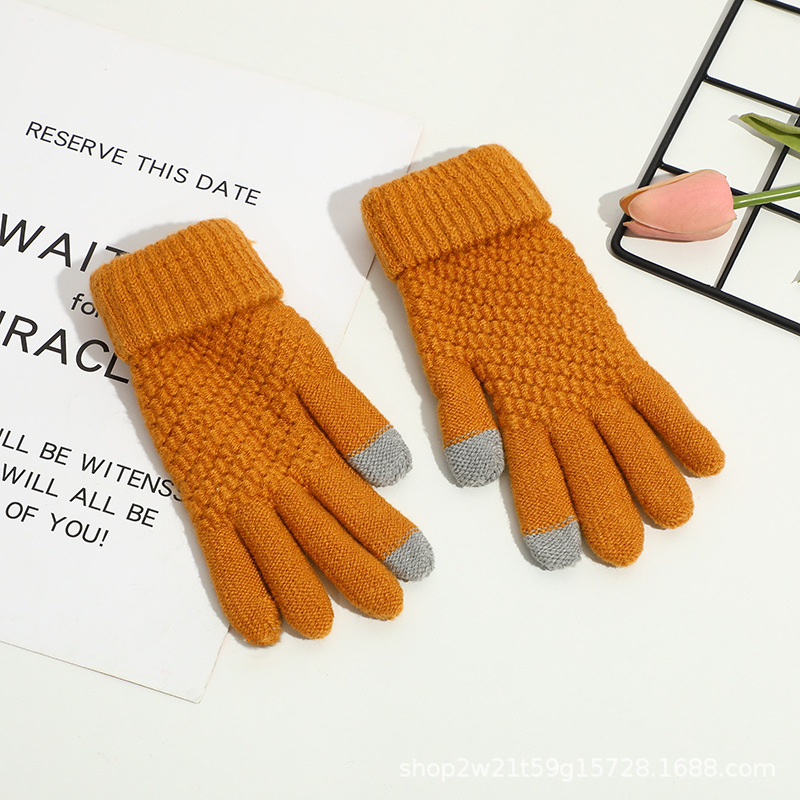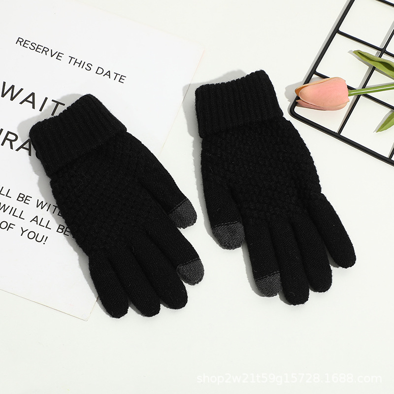 한국형 메쉬 아크릴 다섯 손가락 장갑 겨울용 두꺼운 방한 보온 야외 라이딩용 두 손가락 터치스크린 디자인
