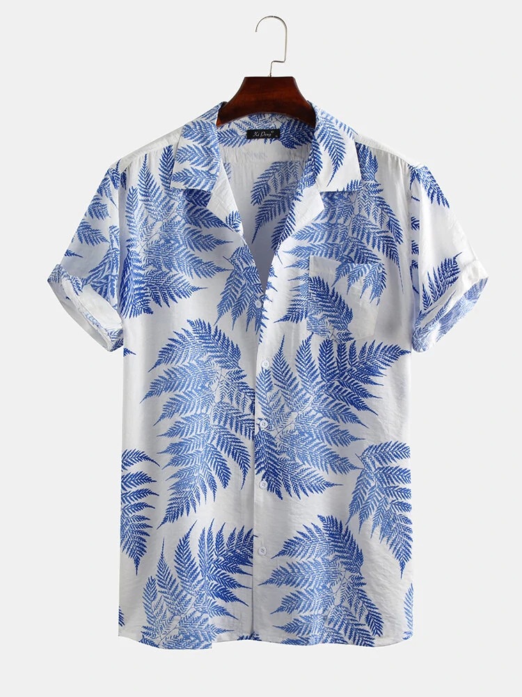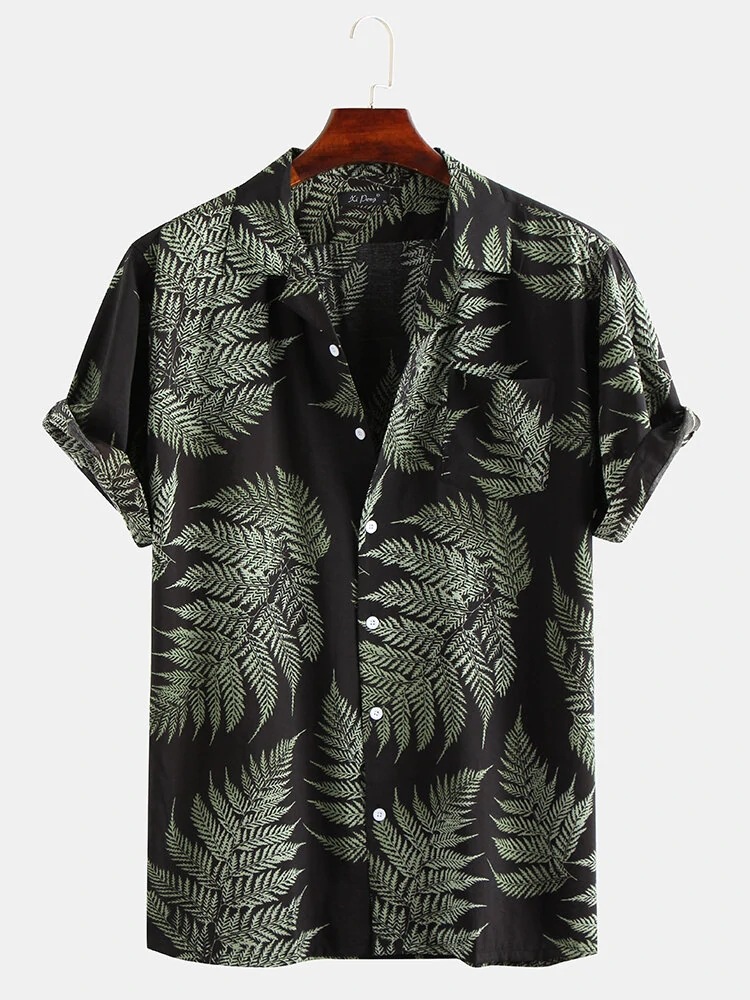 유럽과 미국 남성 캐주얼 느슨한 비치 착용 메이플 리프 프린트 반팔 셔츠 동남아시아 하와이 멀티 컬러 셔츠스토어 가기