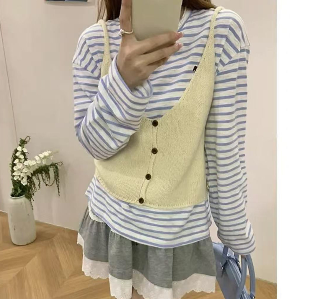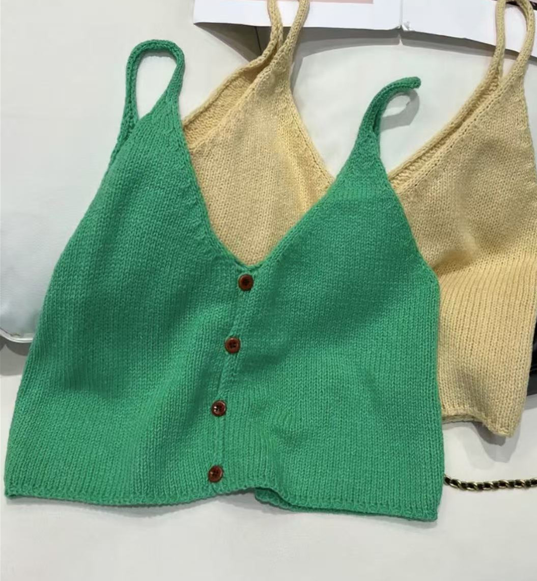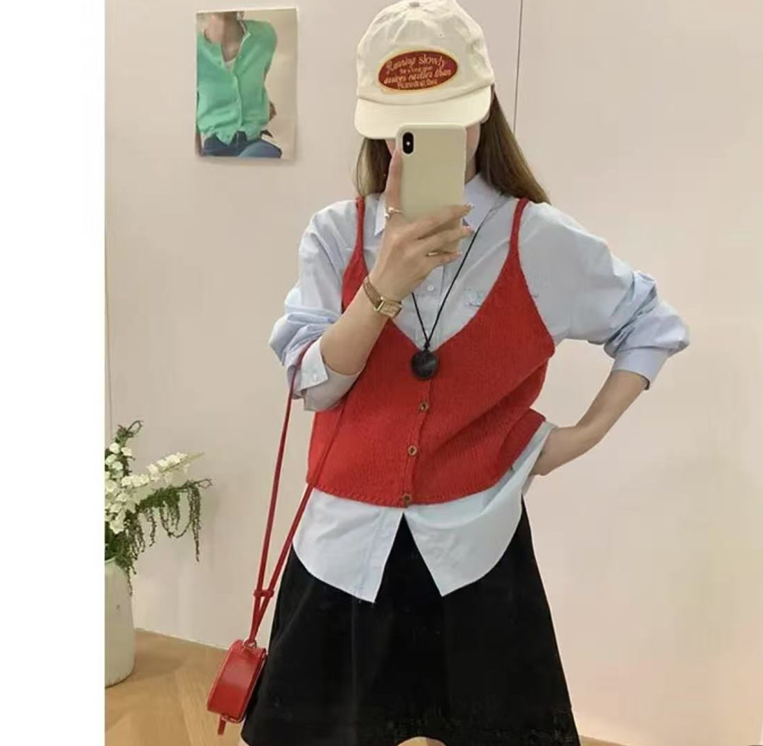 한국 스타일 신상 무지 싱글버튼 니트 숏 조끼 여성용 울 혼방 레이어드 스타일 젊어보이는 조끼