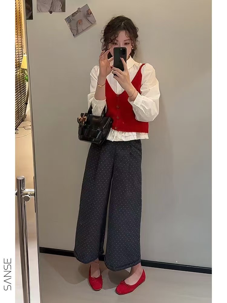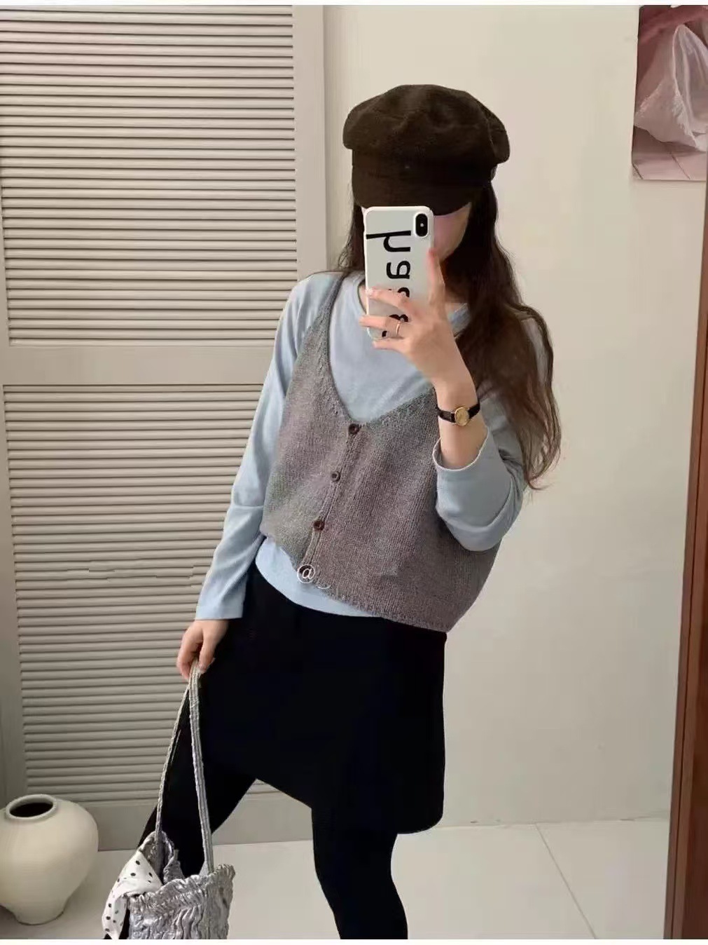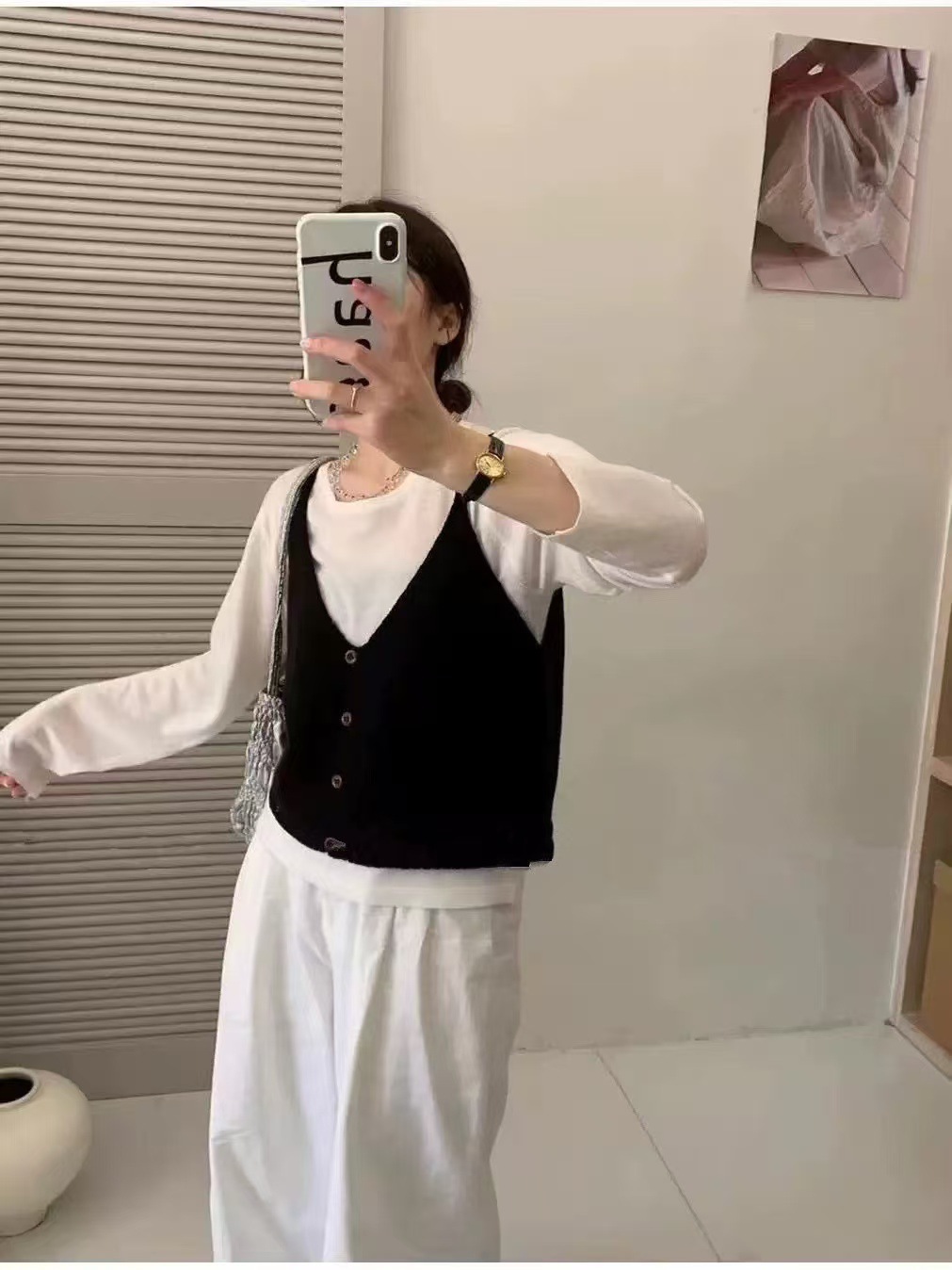 한국 스타일 신상 무지 싱글버튼 니트 숏 조끼 여성용 울 혼방 레이어드 스타일 젊어보이는 조끼