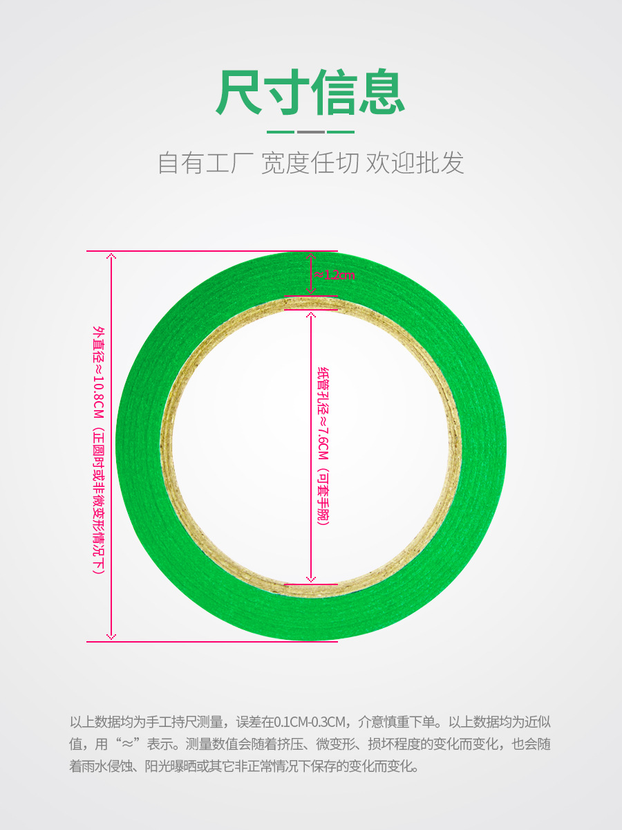 • 폭 0.8cm * 길이 50 m [전체 상자에 324 롤을 가져 가십시오]; 다크 그린 및 종이 테이프 (고점도 3.0 인치 종이 튜브)