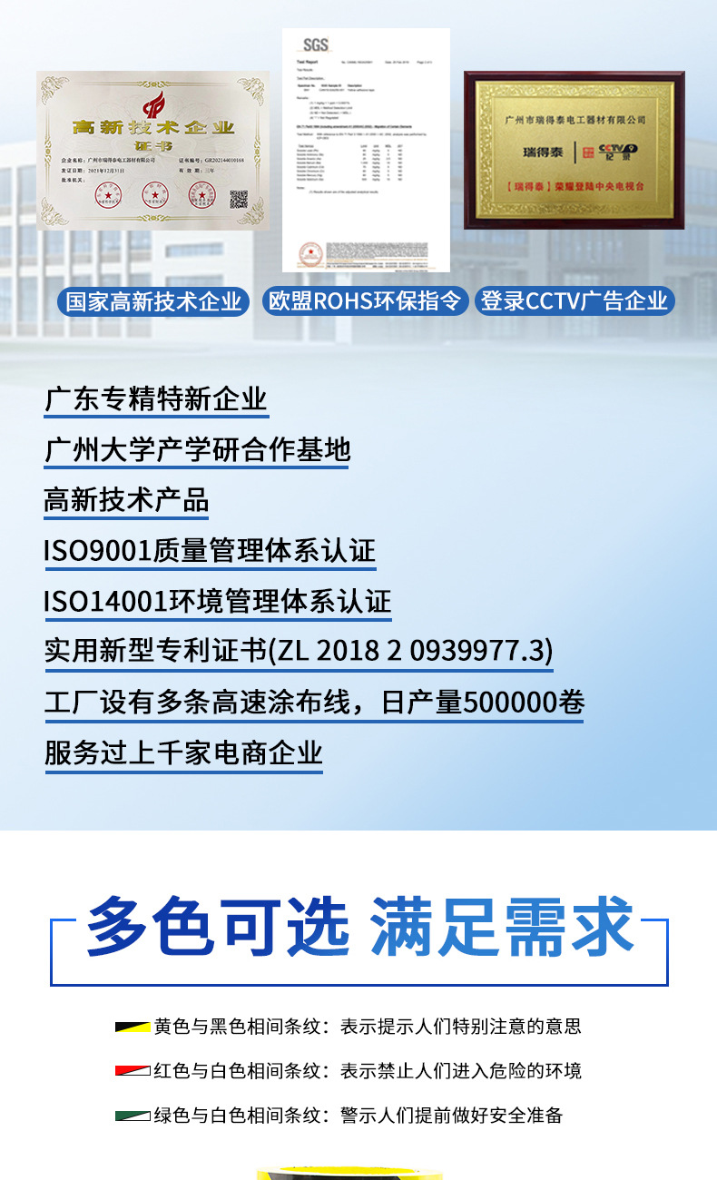 로고 능직 바닥 테이프 8cm1 0cm/4.8X18y 컬러 내마모성 얼룩말 테이프 노랑 검정 경고 테이프