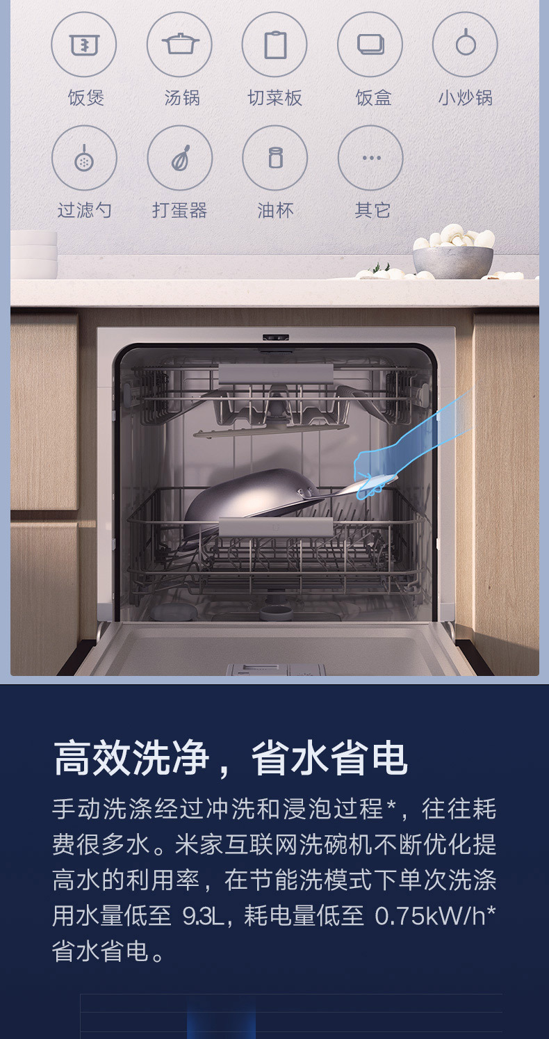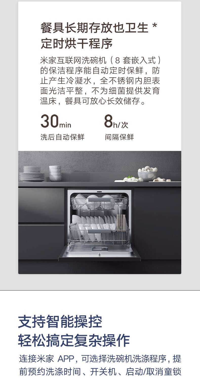 Mijia 인터넷 식기 세척용 내장 완전 자동 가정용 그릇 8 세트 지능형 오염 제거 및 스토리지 통합에 적합스토어 가기