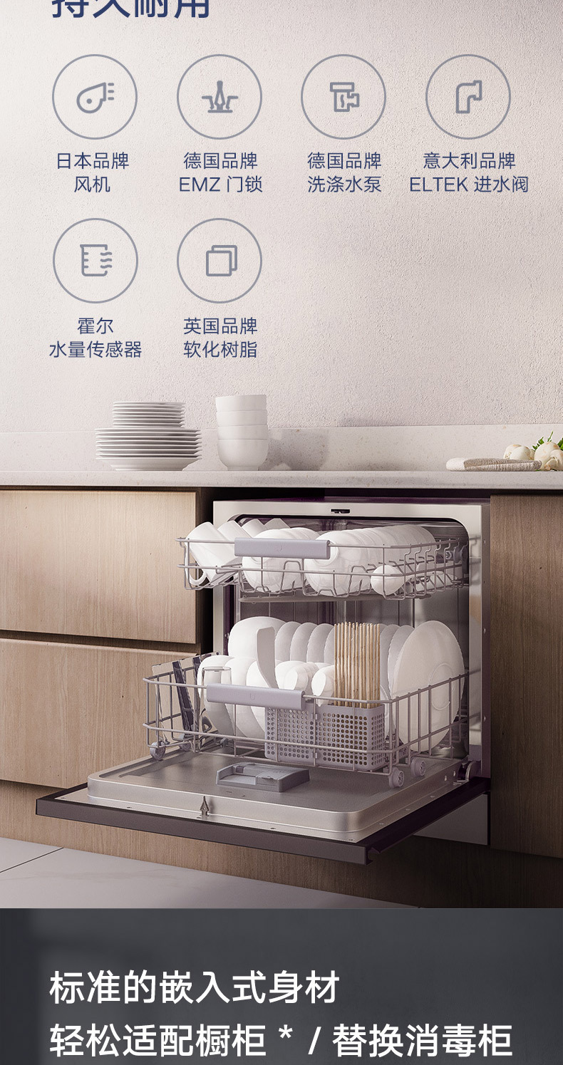 Mijia 인터넷 식기 세척용 내장 완전 자동 가정용 그릇 8 세트 지능형 오염 제거 및 스토리지 통합에 적합