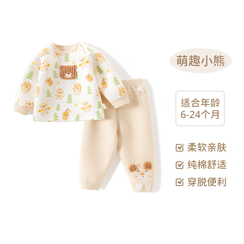 유아 가을과 겨울 3 층 따뜻한 어깨 버클 세트 어린이 따뜻한 세트 신생아 아기 옷 긴 소매