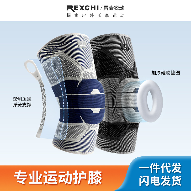 무릎 보호대 높은 탄성 충격 흡수 피트니스 등산 보호대 남성용 달리기 농구 장비 미끄럼 방지 실리콘 니트 스포츠 무릎 보호대스토어 가기