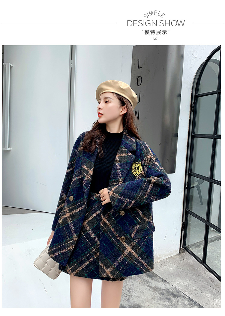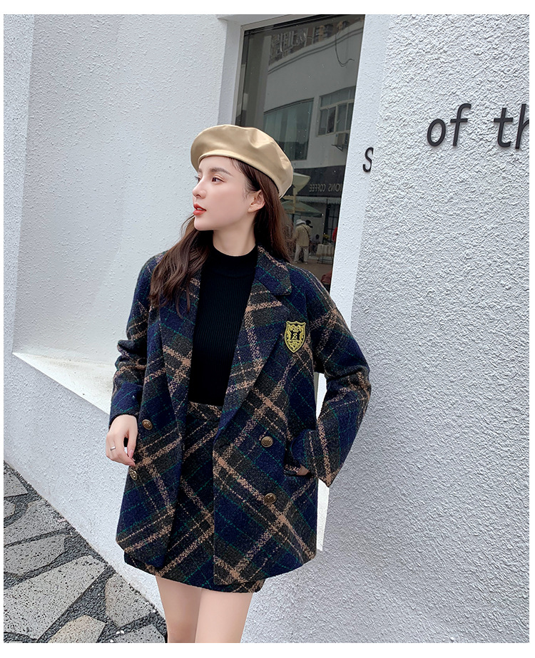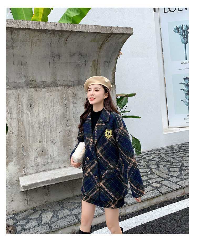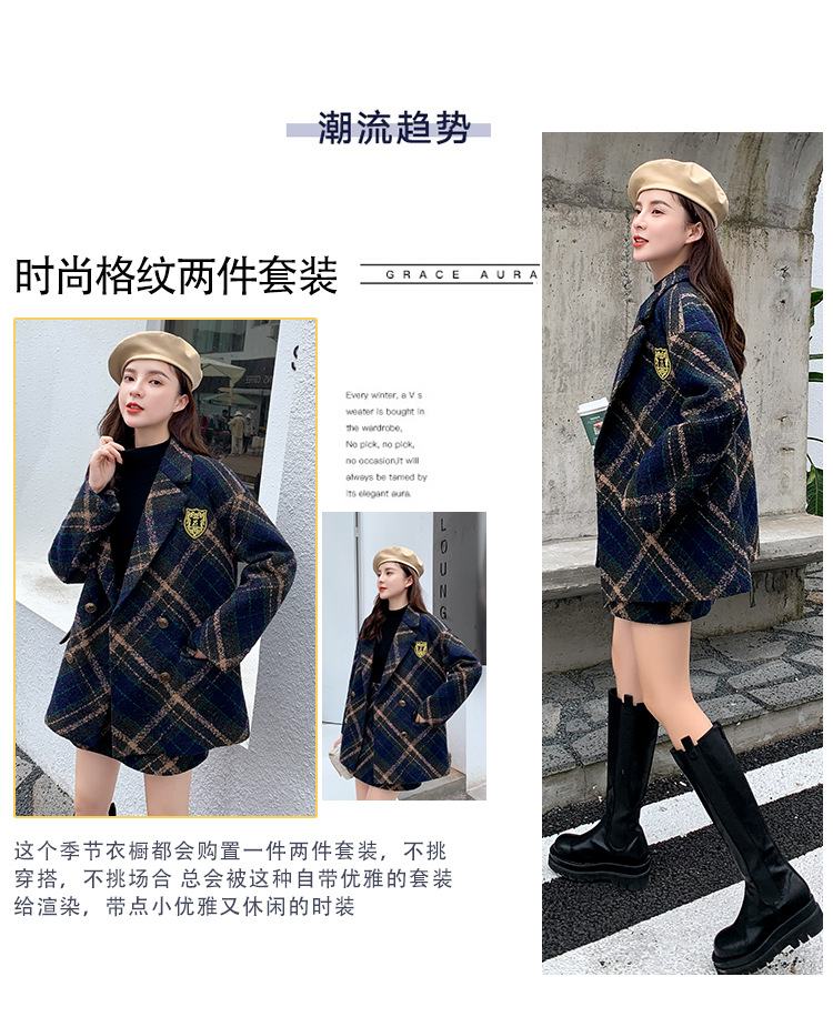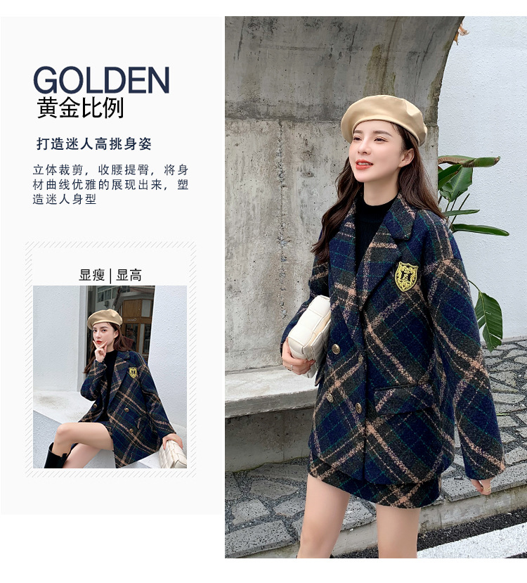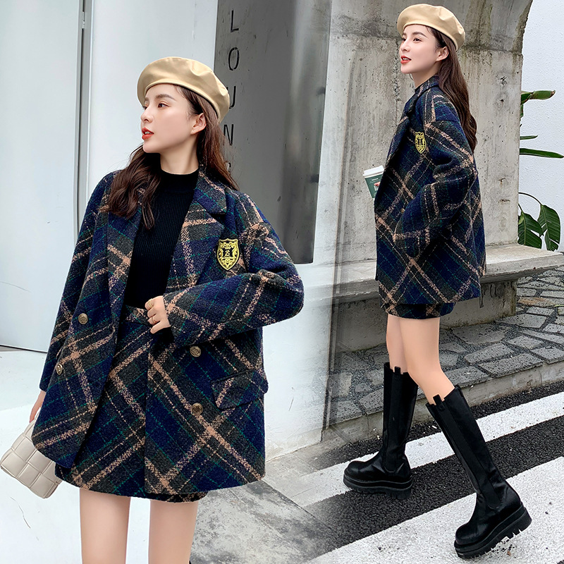 2022 가을과 겨울 새로운 학업 스타일 투피스 여성의 연령 감소 패션 세트 모직 천 코트 세트스토어 가기