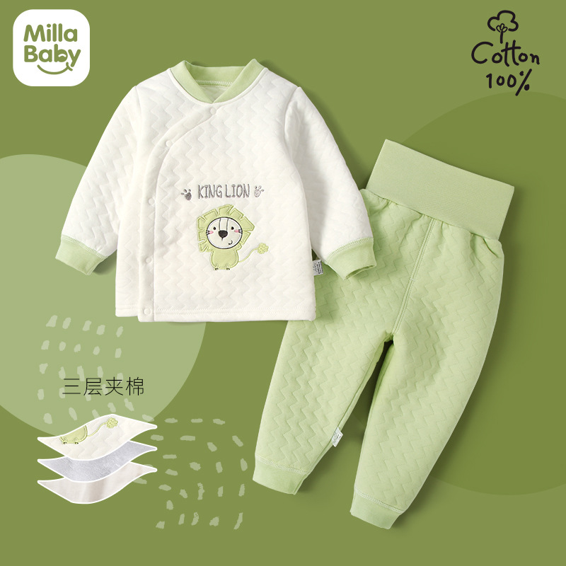 아기의 가을과 겨울 잠옷 세트 아기의 따뜻한 배 보호 하이 웨이스트 2 피스 어린이 두꺼운 누비 이불 속옷 어린이 의류스토어 가기
